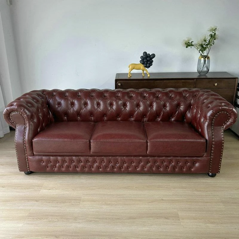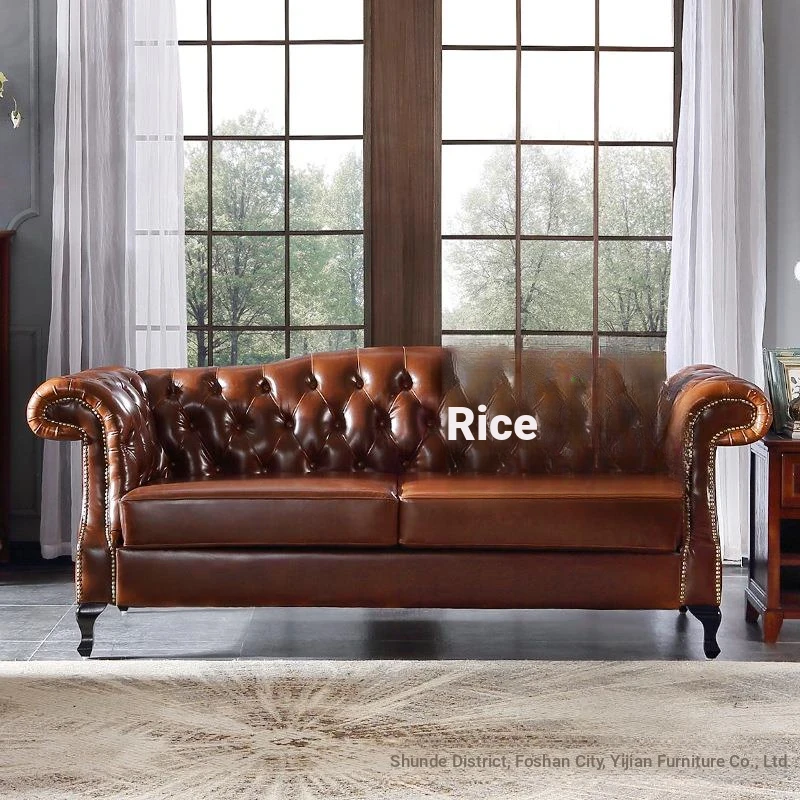 American Style Luxury Genuine Leather Pull-Tab Sofa - Vintage Multi-Person Sofa for Hotel Lounge & Cigar Bar - Direct Supply from Manufacturer