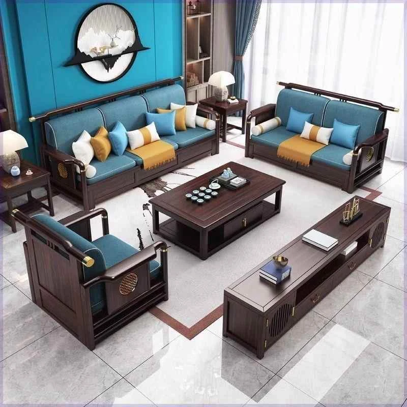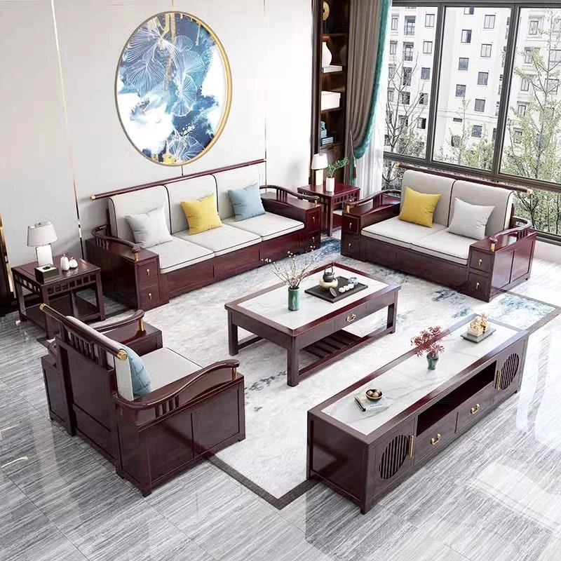 Modern Chinese-Style Solid Wood Sofa Set – Minimalist, Luxurious, and Versatile for Small Spaces – Perfect for Year-Round Comfort with Storage Solutions for Your Living Room
