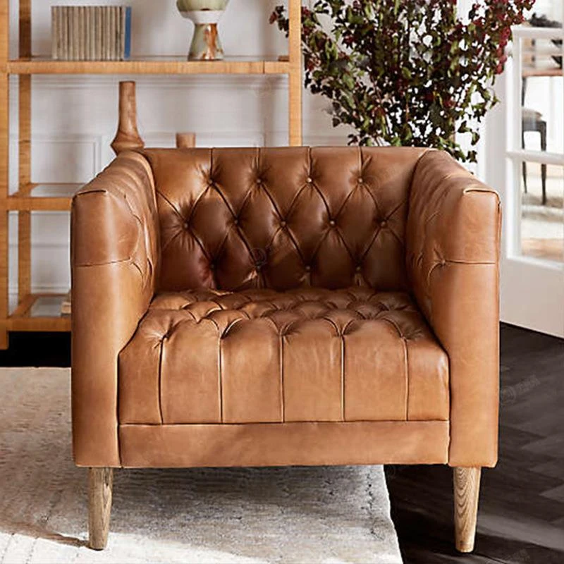 Luxurious Single Sofa Chair - Modern Minimalist Leather Lounge Chair for Living Room & Balcony, Stylish American Tiger Chair, Scandinavian Design