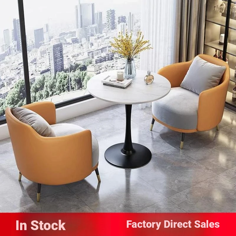 Modern Reception Desk and Chair Set for Real Estate Offices - Stylish Sofa, Coffee Table, and Round Negotiation Table Combo - Perfect for Client Meetings with Comfortable Seating for Two