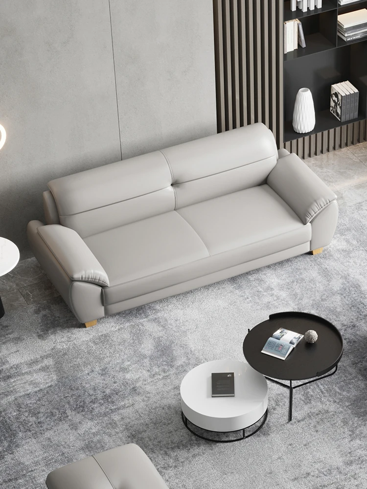 Modern Minimalist Two-Person Genuine Leather Sofa for Small Spaces - Scandinavian Style Luxurious 3-Seater Sofa for Living Room and Office, Perfect Combination of Comfort and Elegance