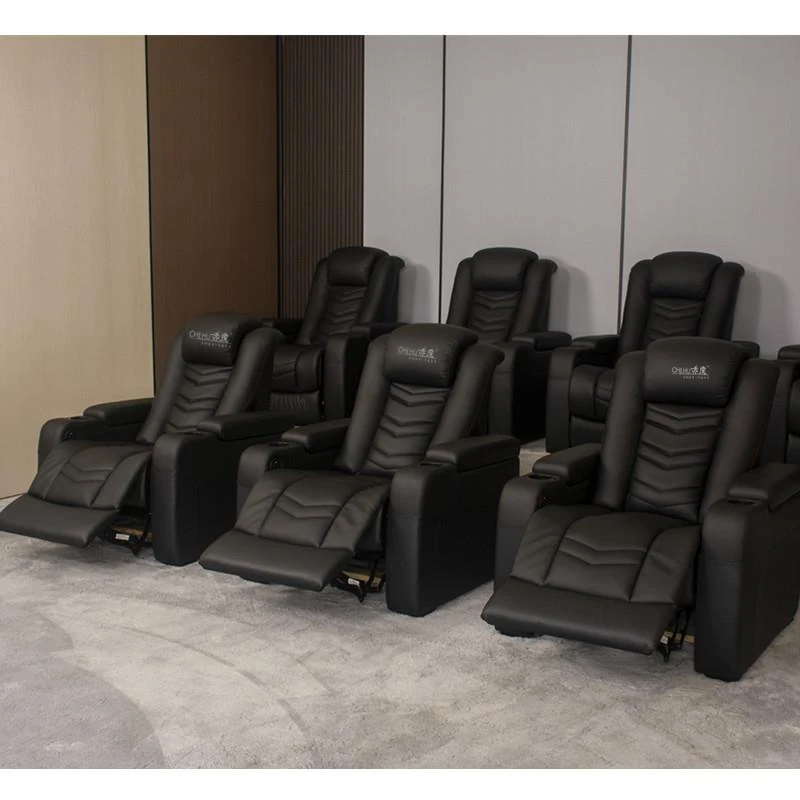 Luxury Electric Reclining Home Theater Sofa - Premium Leather 3-Seat Space Capsule for Private Cinema Rooms and Villas, Perfect for Ultimate Movie Experiences!
