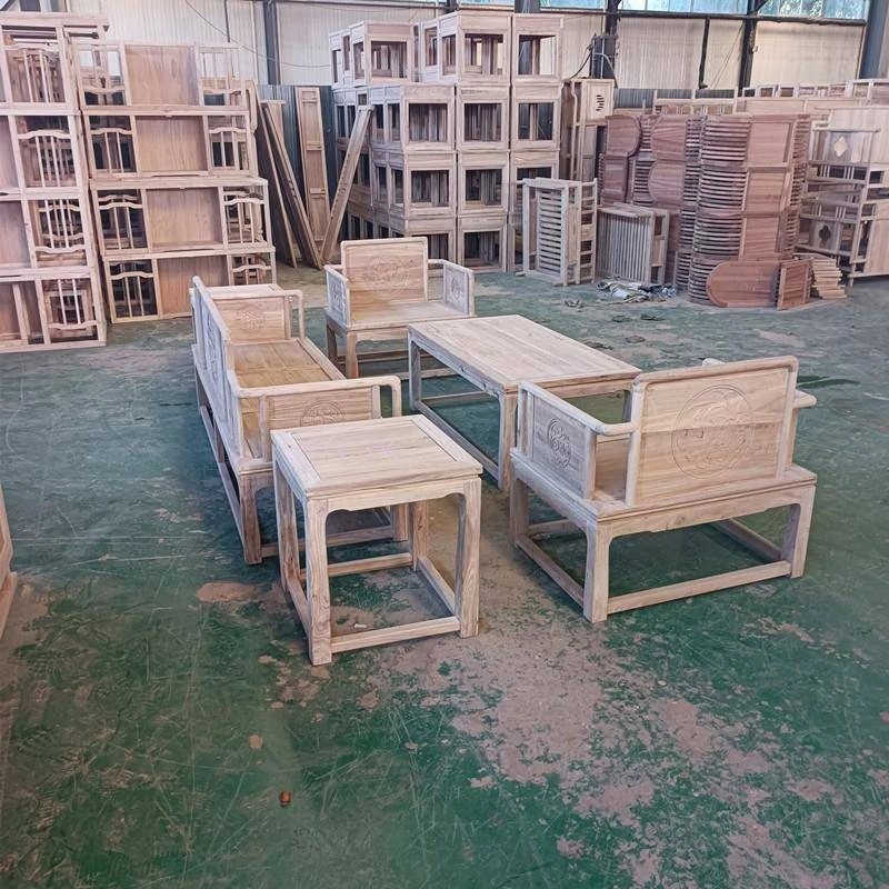 北欧スタイルの無垢材使用!新中式古典デザインの老榆木ソファと茶卓のセット - 家庭用家具、ホワイト仕上げの工場直販。おしゃれで落ち着いたお部屋作りに最適!
