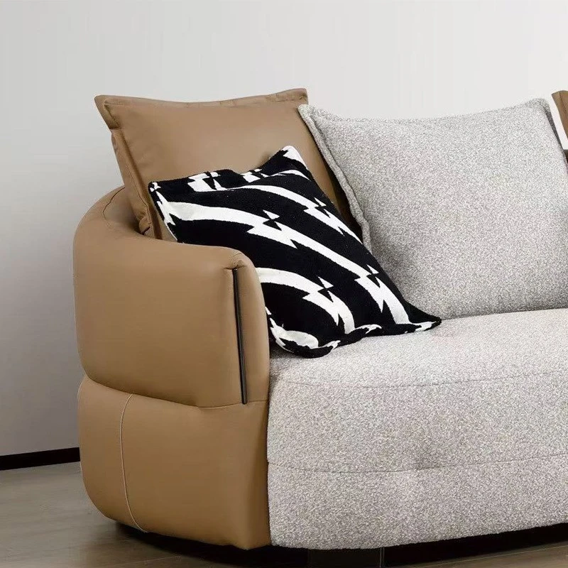 成都のラウンジに最適!曲線デザインの高品質グラフェンソファ。エコレザーとコットンリネンのコンビネーション、落葉松の無垢材フレームで贅沢な座り心地を実現。おしゃれで快適な空間を演出します!