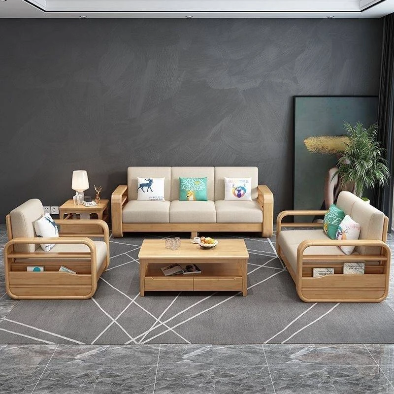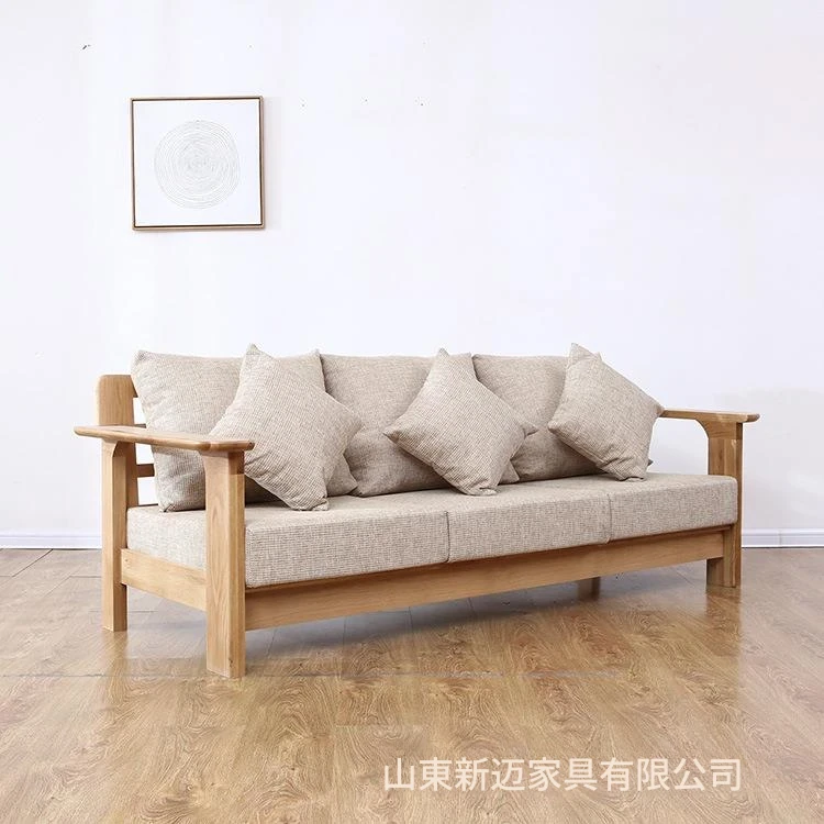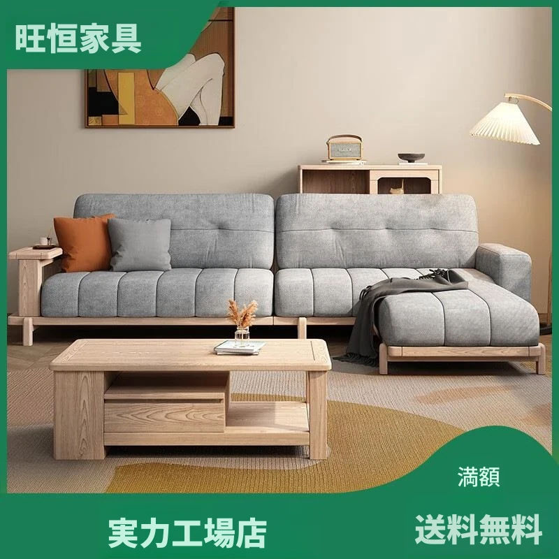 新作シンプルリビングソファ!多機能オーク無垢材ソファ3人用コンビネーション。天然木の温もりを感じる、快適でスタイリッシュな空間を演出します!