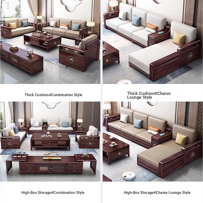 Modern Chinese Style Solid Wood Sofa Set for Small Spaces - Luxurious Black Walnut Living Room Sofa with Minimalist Design and Storage Solutions