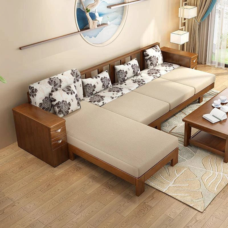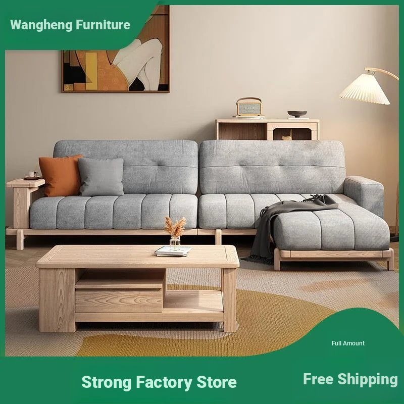 Modern Minimalist Solid Wood L-Shaped Chaise Lounge Sofa Set - Ideal for Small Spaces, Versatile for All Seasons – Perfect Addition to Your Living Room Furniture