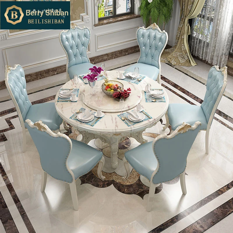 Elegant European Marble Dining Table Set with Solid Wood, Multifunctional Round Table with Lazy Susan, Perfect for Home Use - Seats 6 for a Delightful Dining Experience