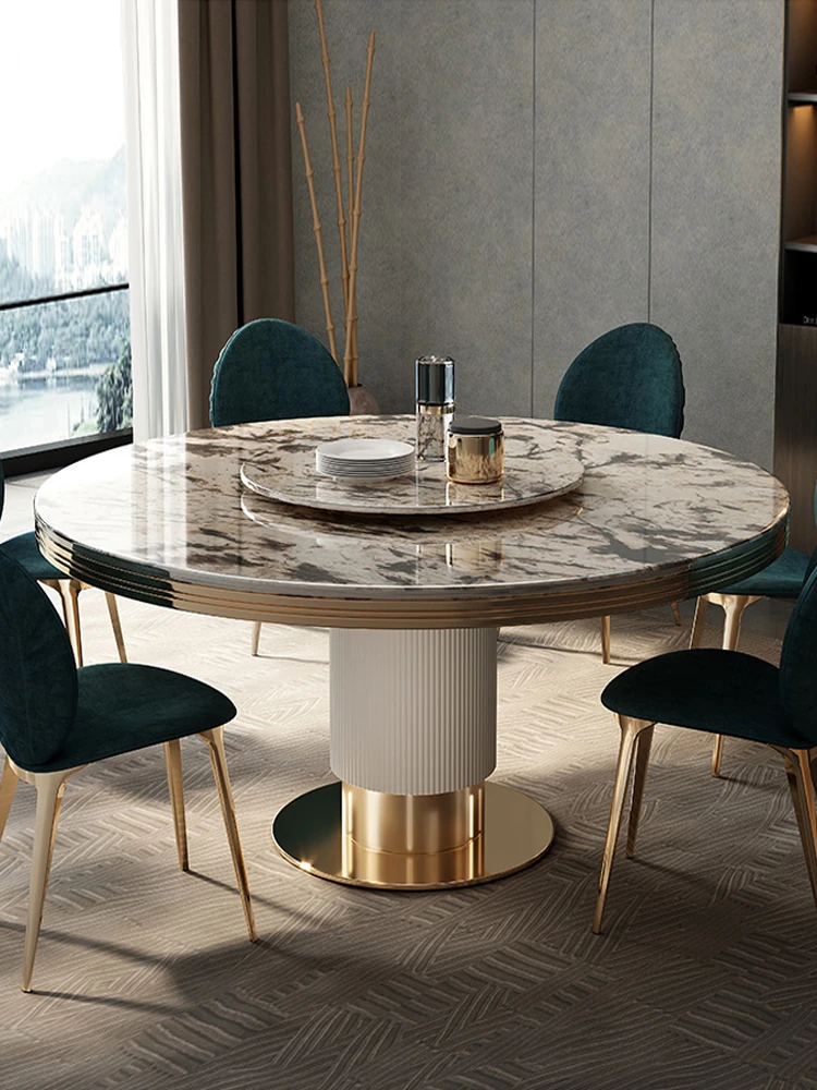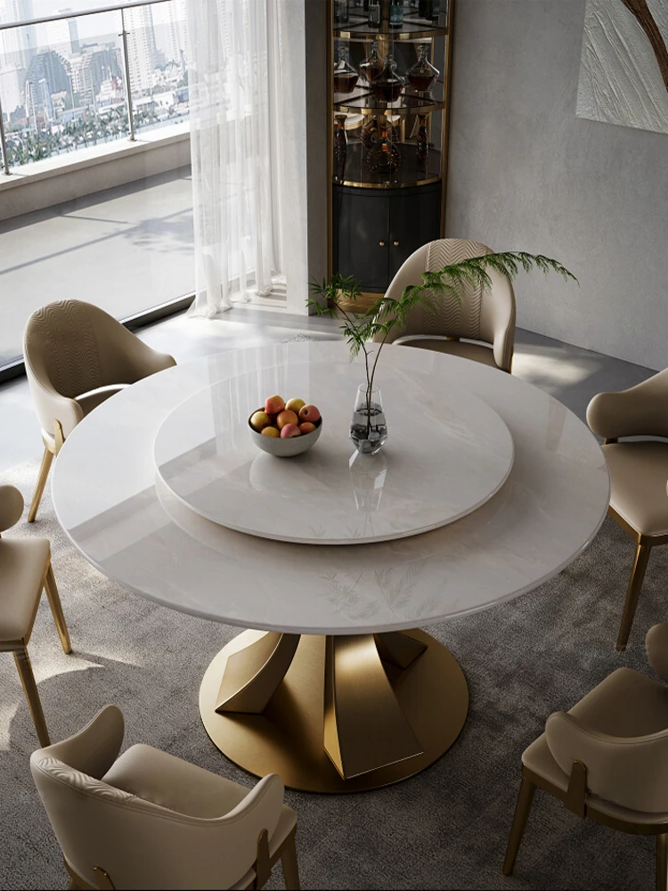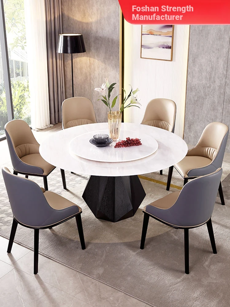 Luxury Imported Marble Dining Table Set - Elegant Round Table for 10-12 People, Perfect for High-End Villas and Spacious Homes