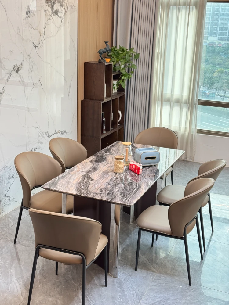 Italian Light Luxury Marble Dining Table - Modern Minimalist Stainless Steel Rectangular Table for Home, Nordic Style Dining Chairs Included