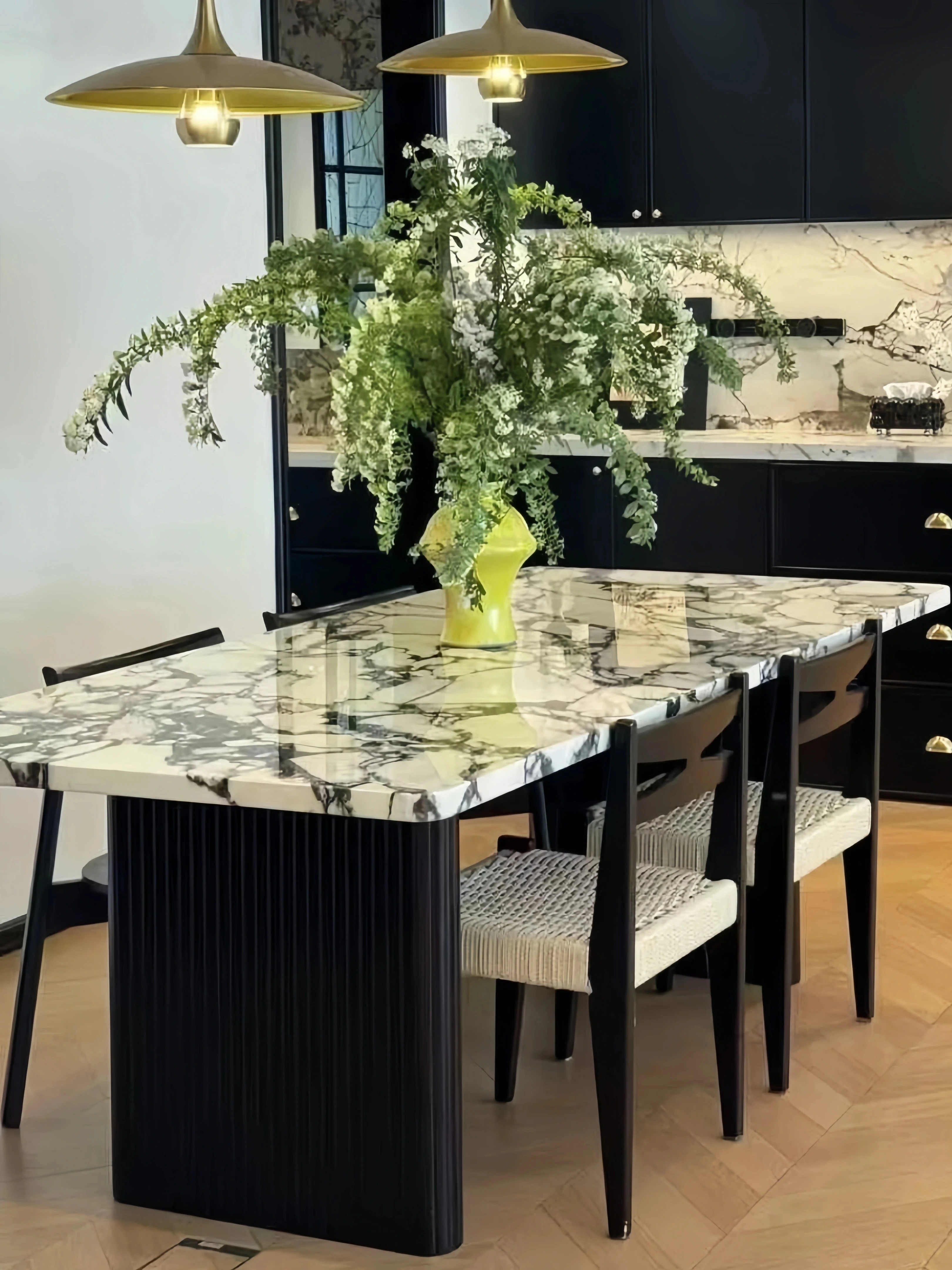 2025 New High-End Minimalist Luxury Marble Dining Table - Karri Ice Jade Stone Texture, Perfect for Small Spaces, Ideal for Home Dining Set with Chairs