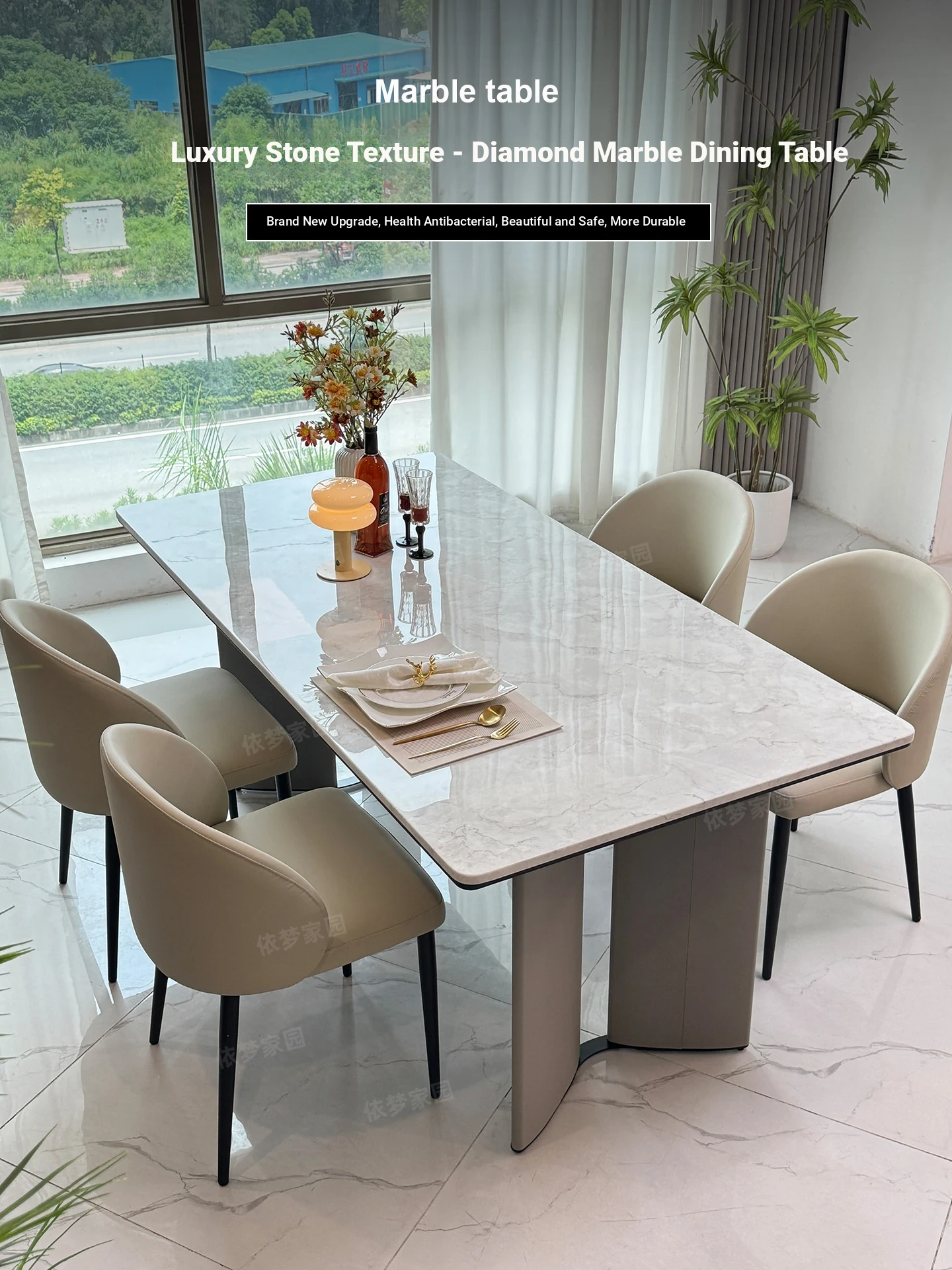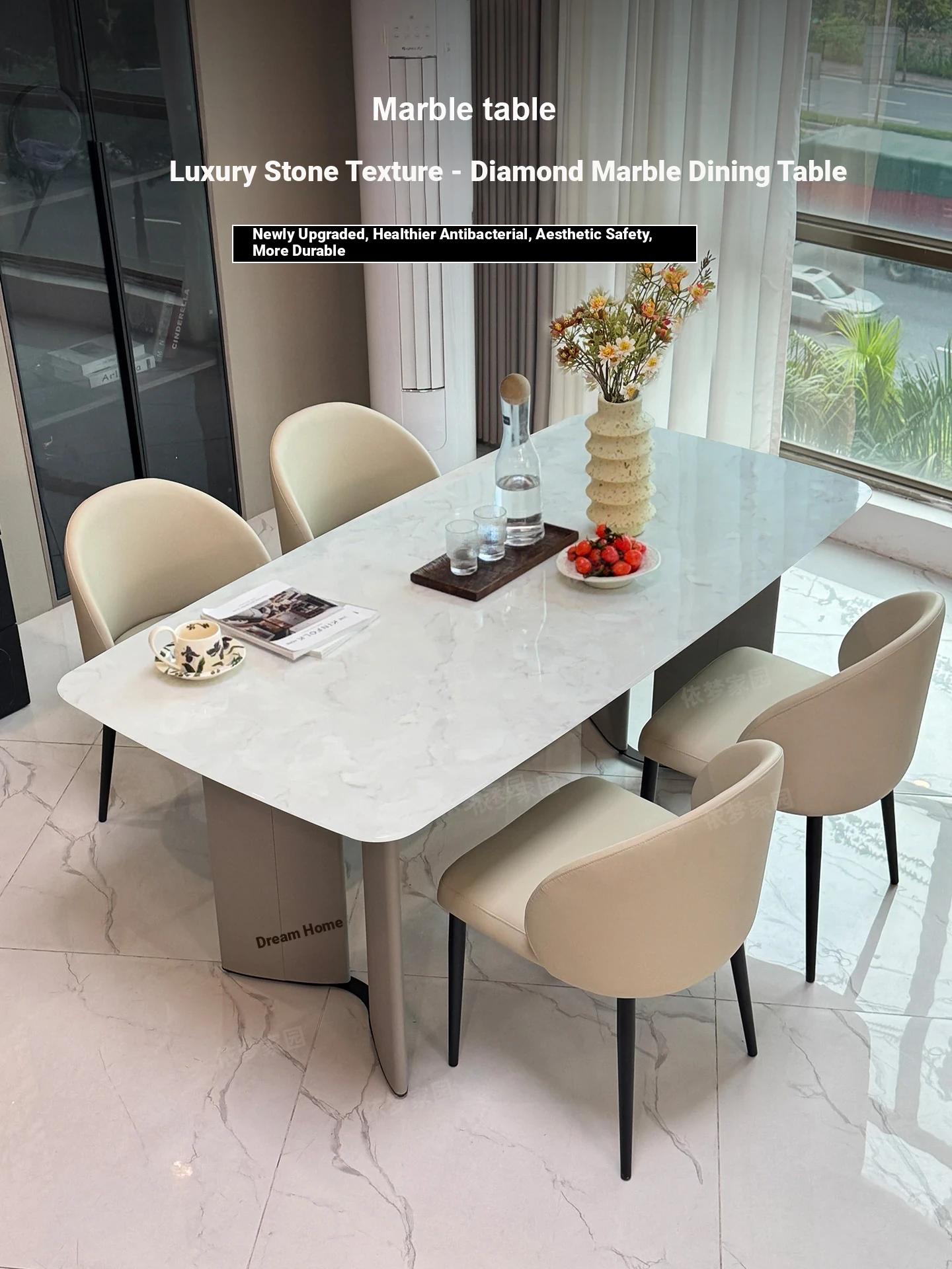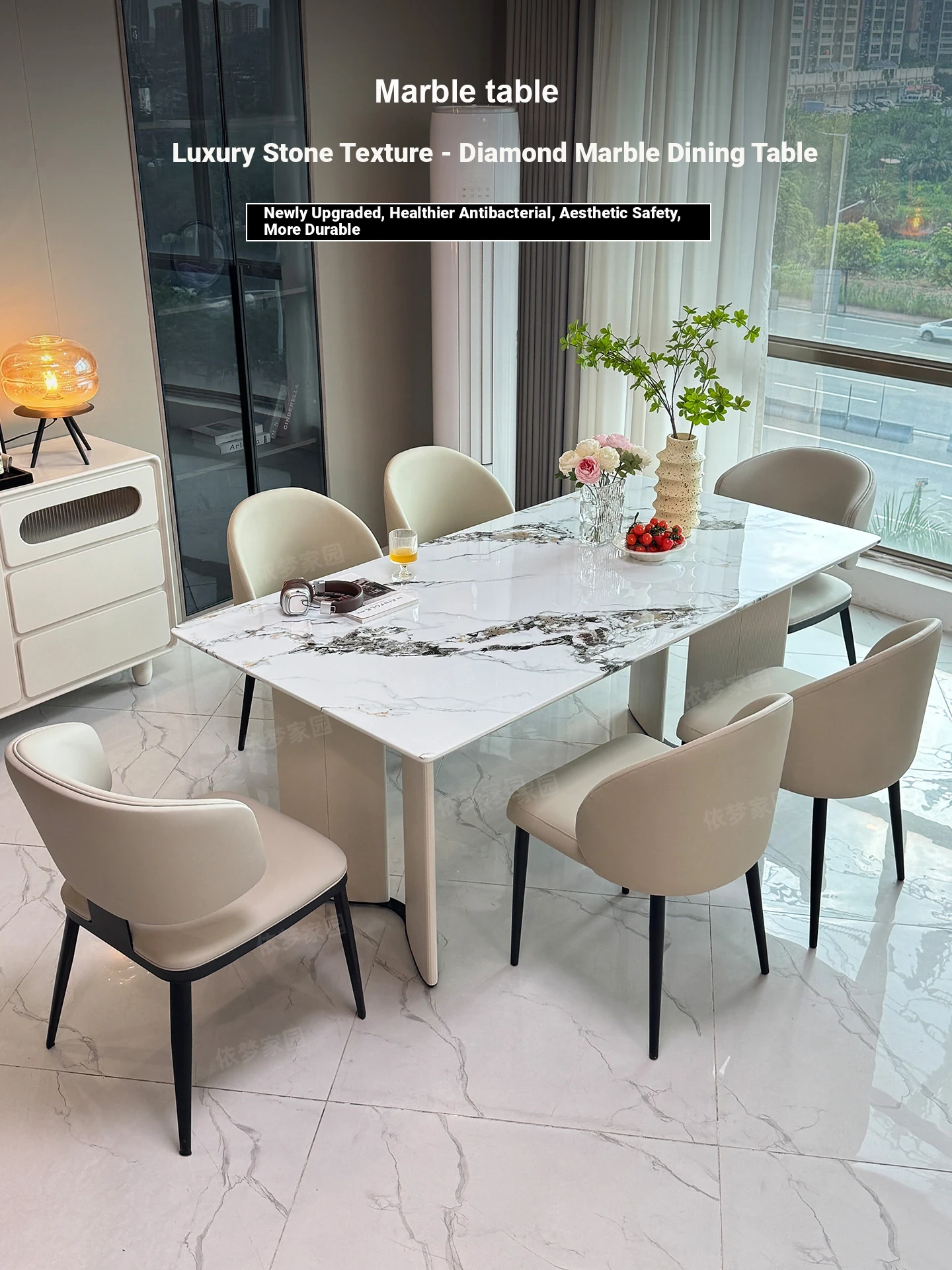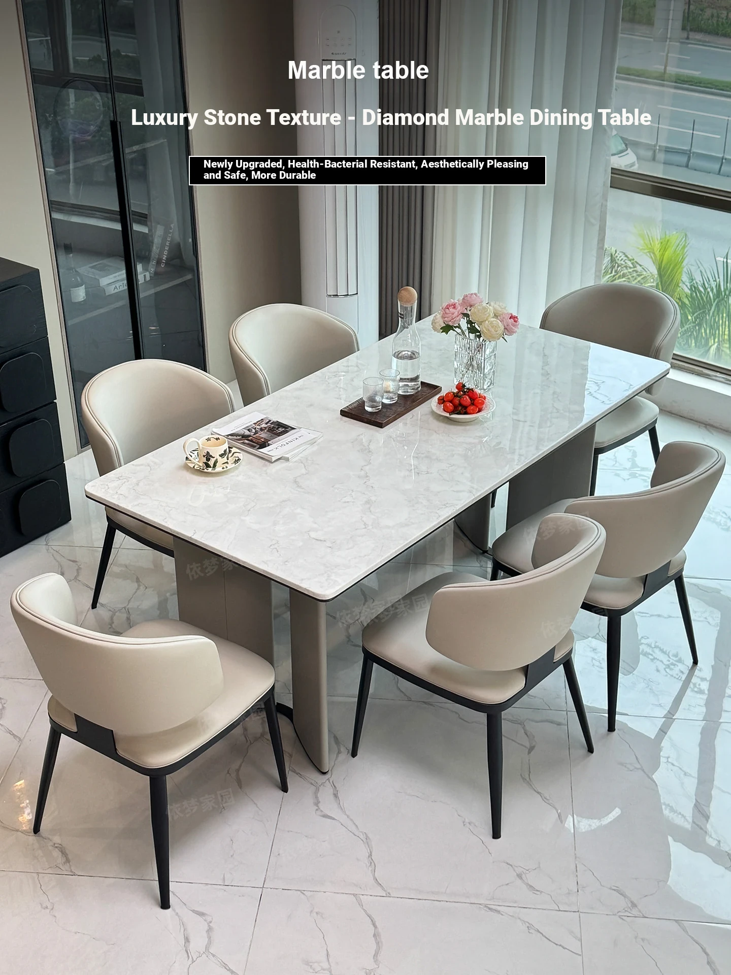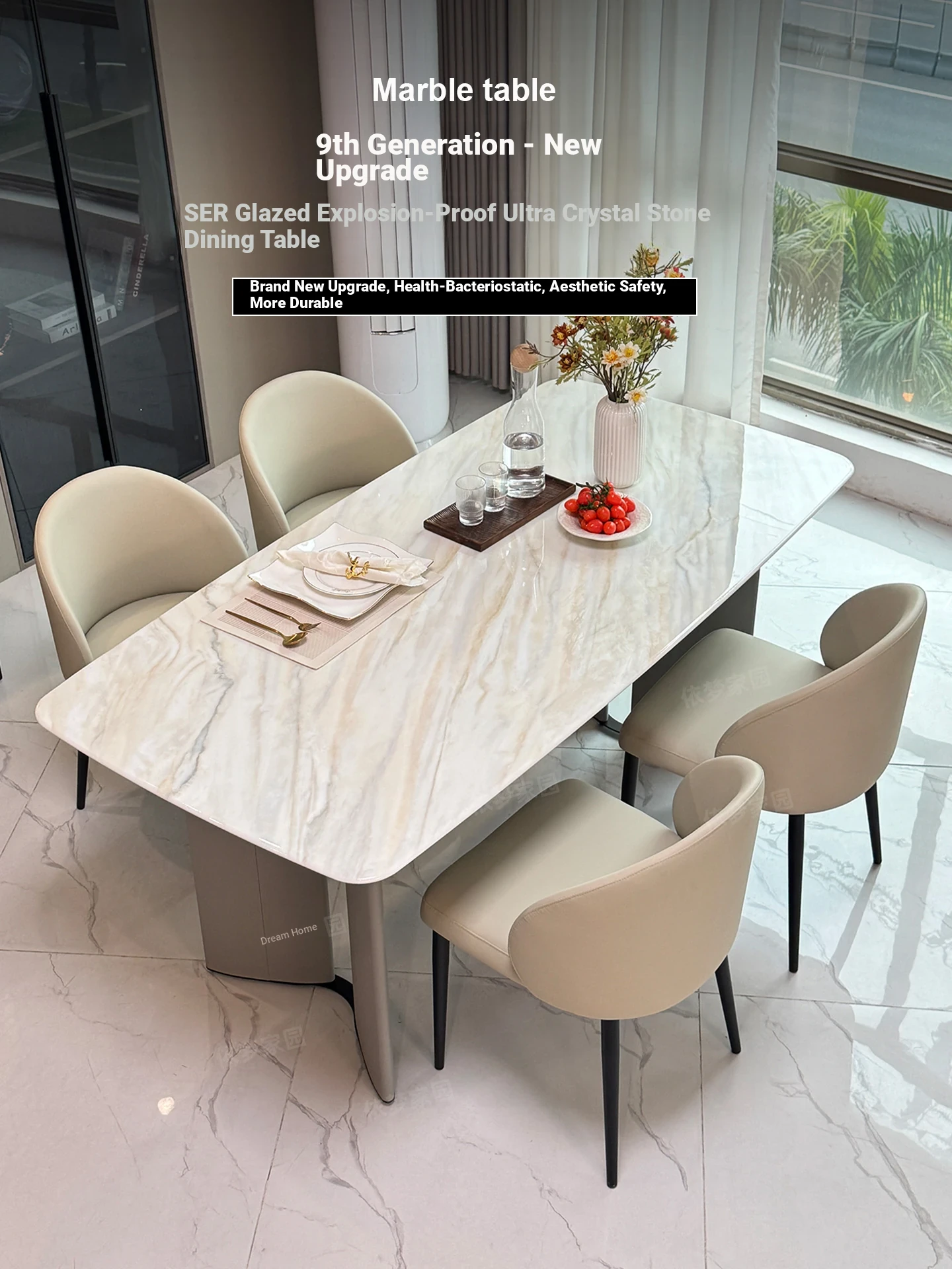 2025 New Luxury Cream Marble Dining Table and Chair Set - Elegant Ultra-Crystal Stone Design for Modern Living Spaces