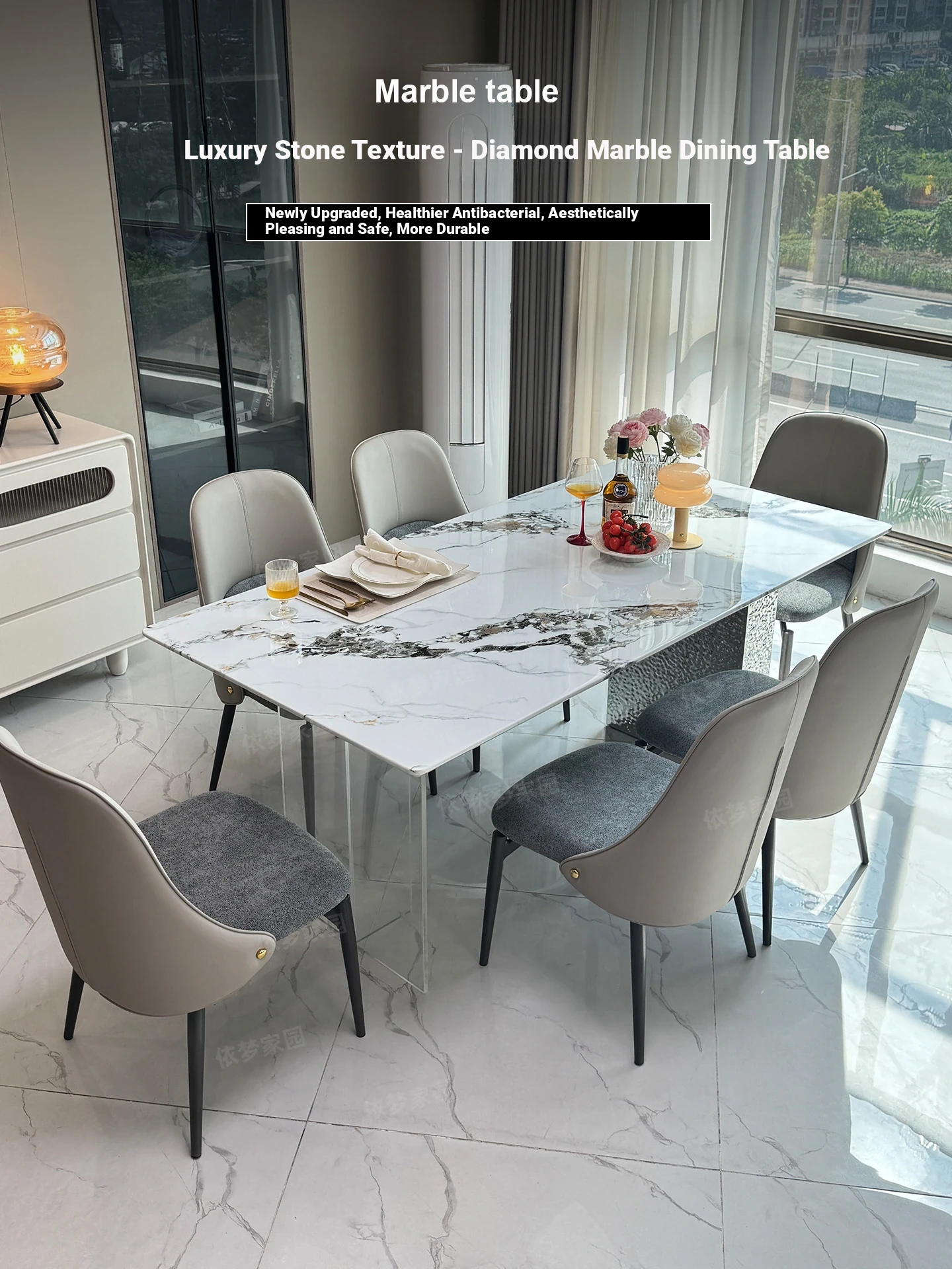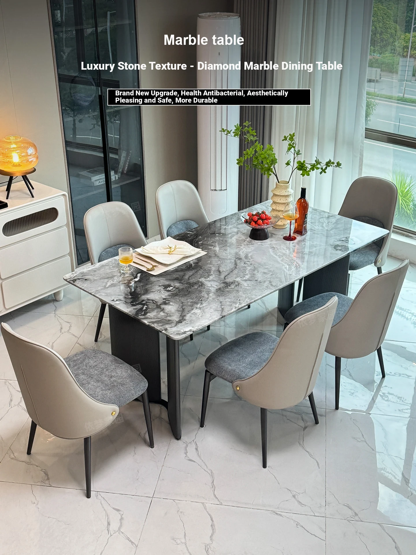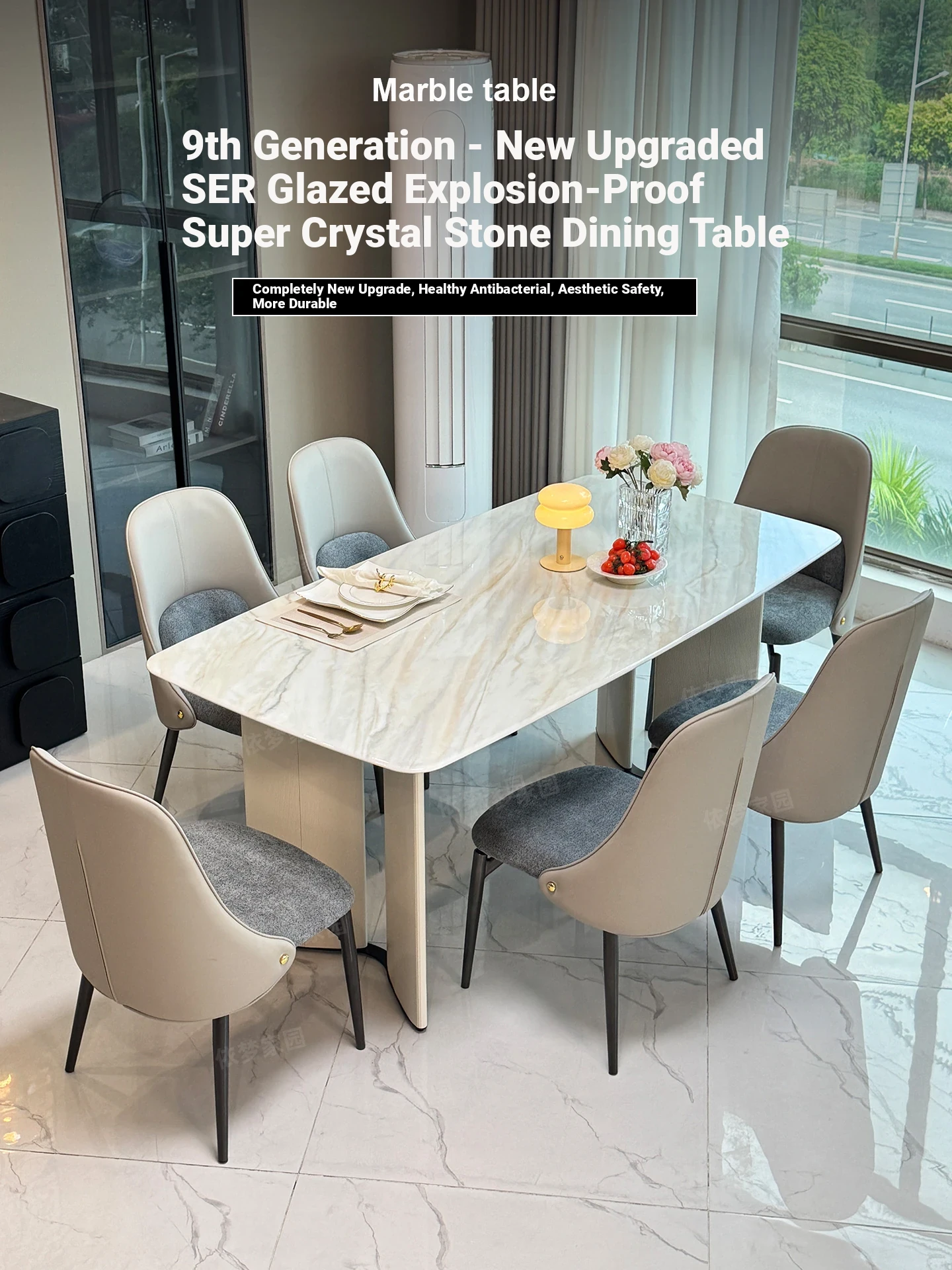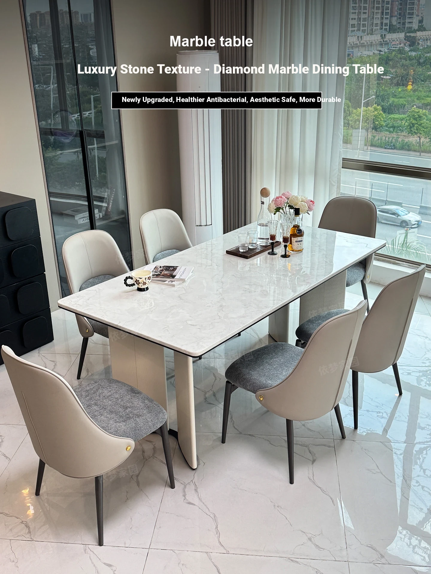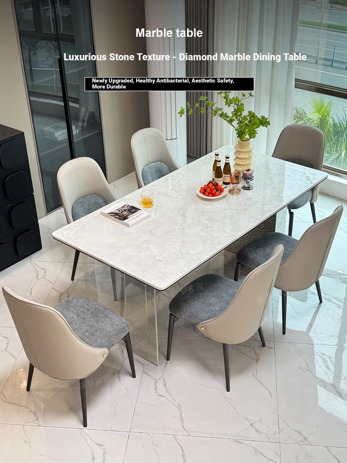 Elegant Marble Dining Table and Chair Set - Modern Minimalist Design with Luxury Natural Microcrystalline Stone and Ultra-Crystal Stone Finish