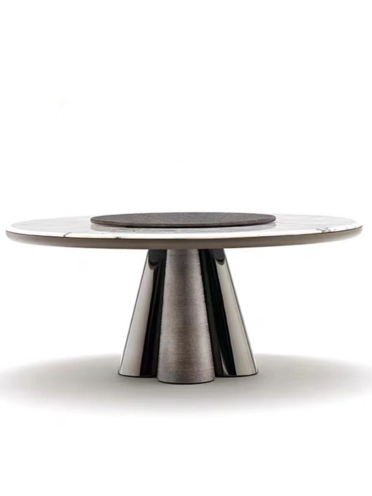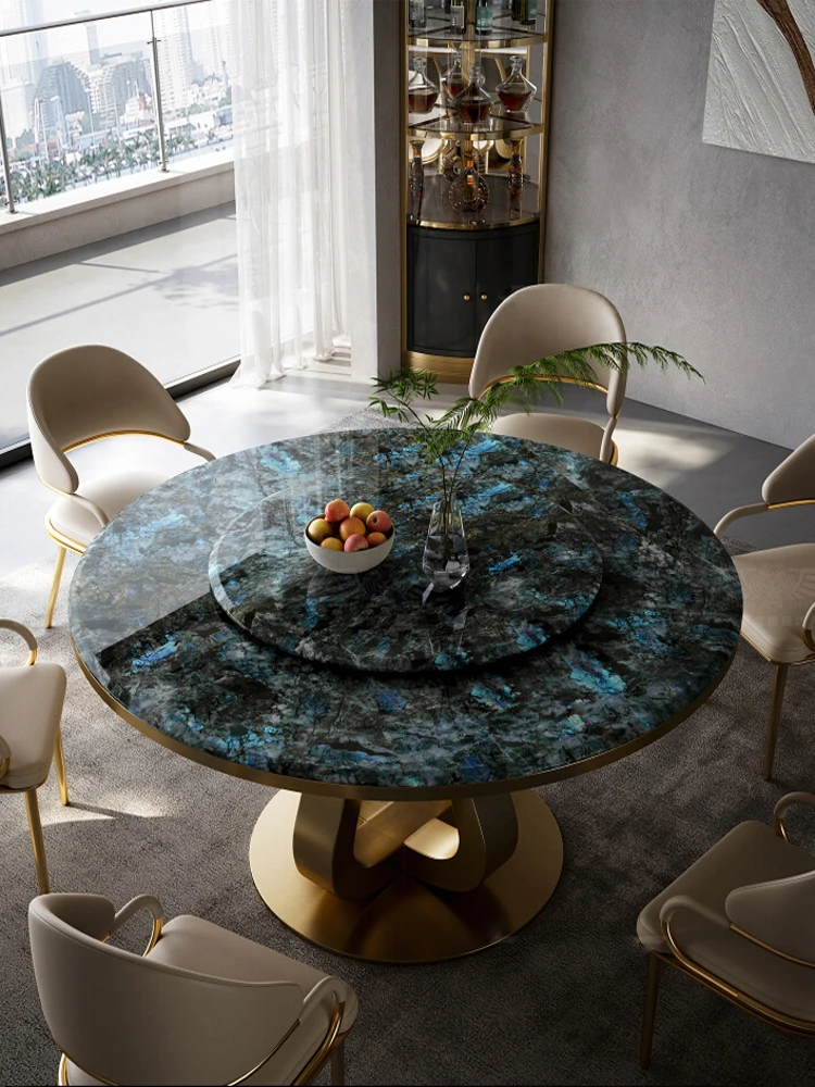 Luxury Marble Round Dining Table with Rotating Tray - Elegant Villa Home Furniture for Upscale Dining Experience in Italian Style