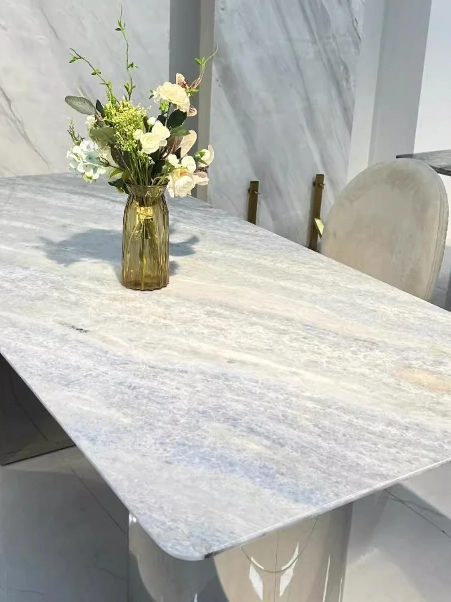 Brazilian Imported Blue Crystal Luxury Dining Table - Rectangular Natural Marble for Italian Light Luxury Villa Design, Perfect for Stylish Dining Experiences