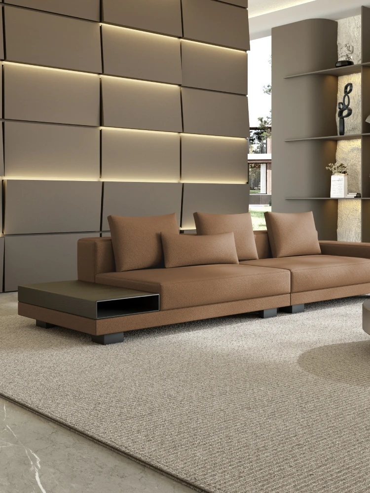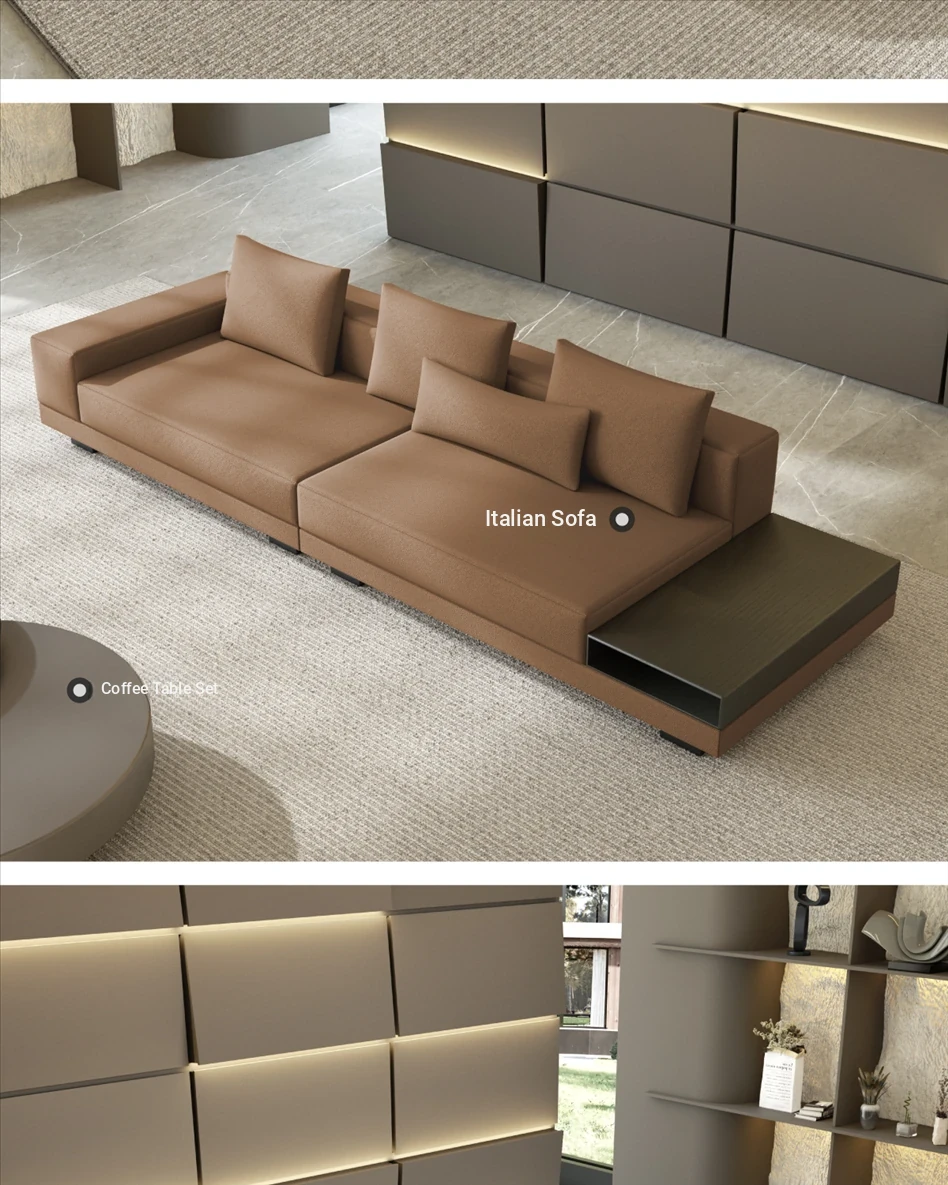2025 New Italian Minimalist Sofa for Living Room – Modern Luxury 4-Seater Straight Sofa for Small Spaces