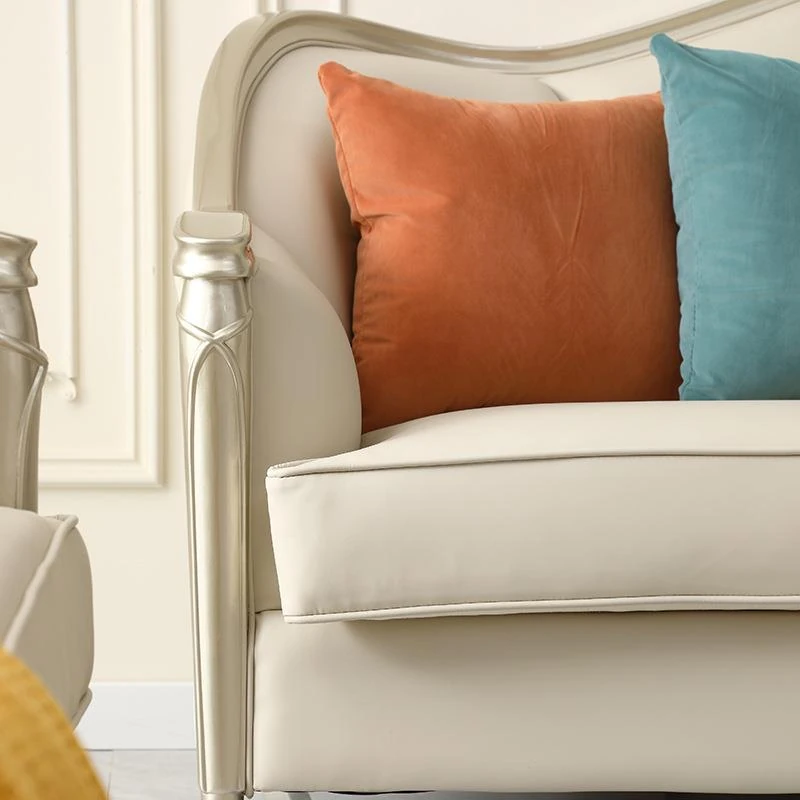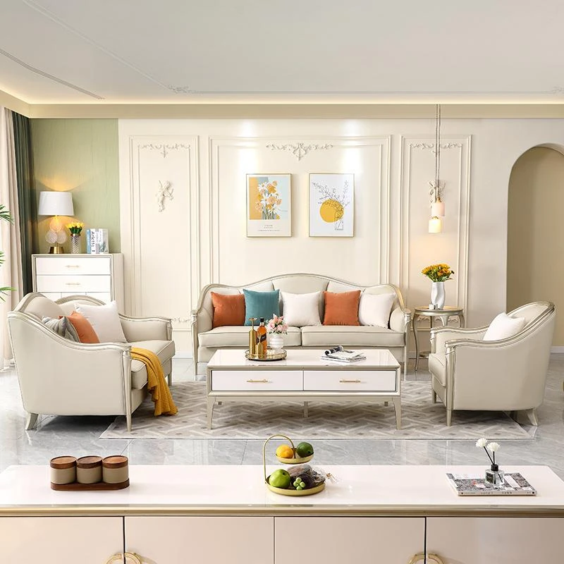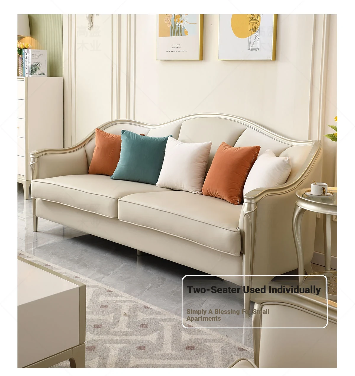 American Style Solid Wood Sofa and Minimalist Coffee Table Set - French Luxury Design for a Chic Living Room - Complete High-End Ensemble