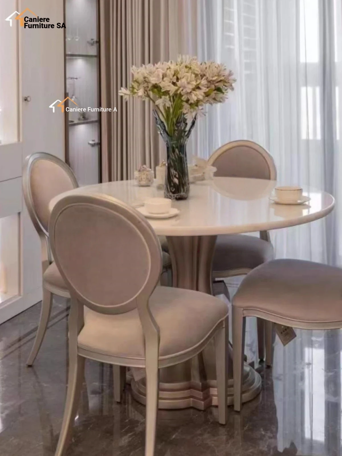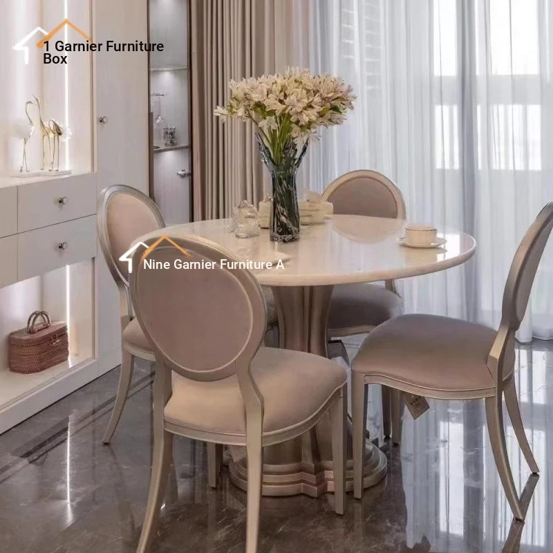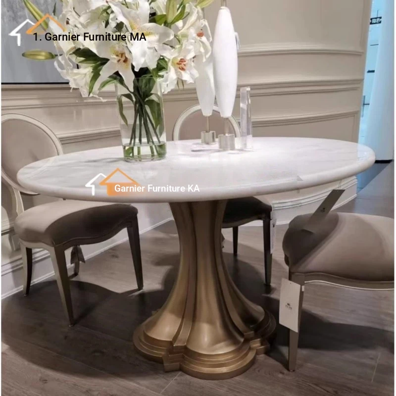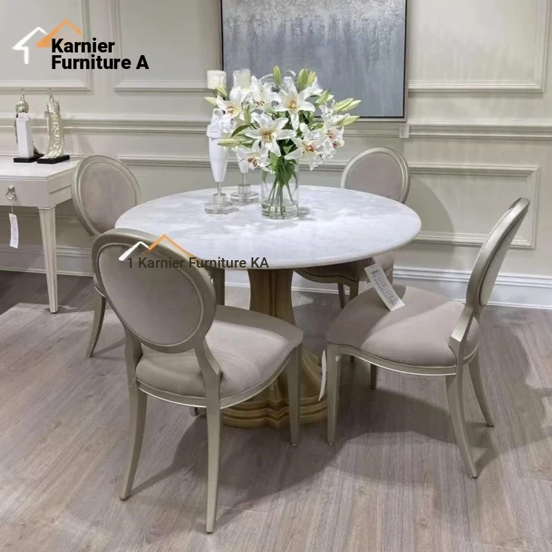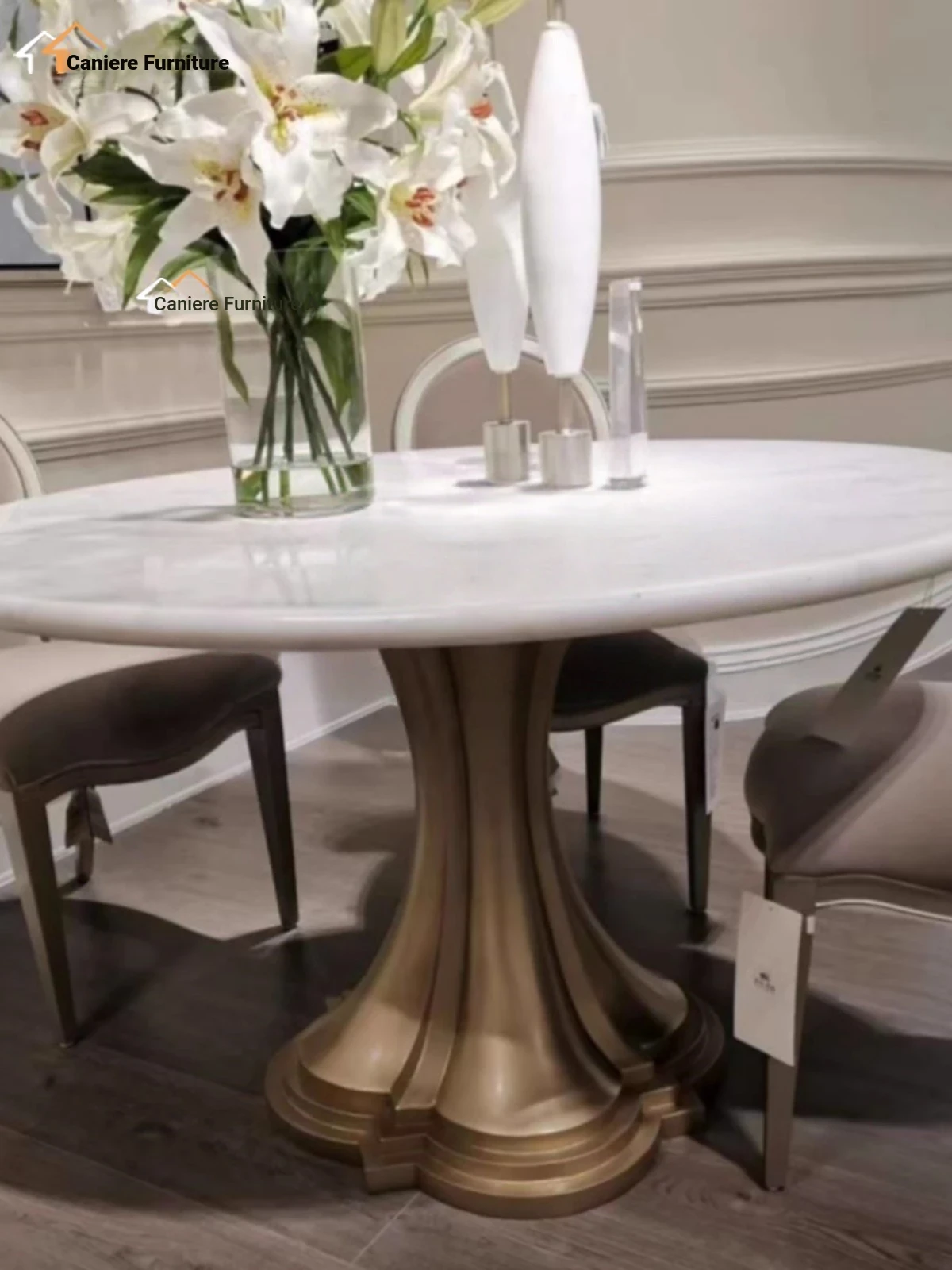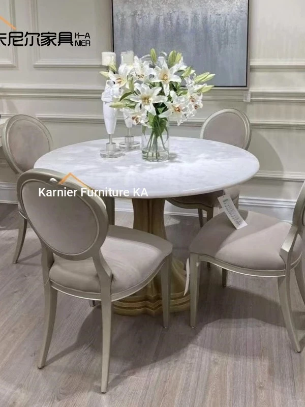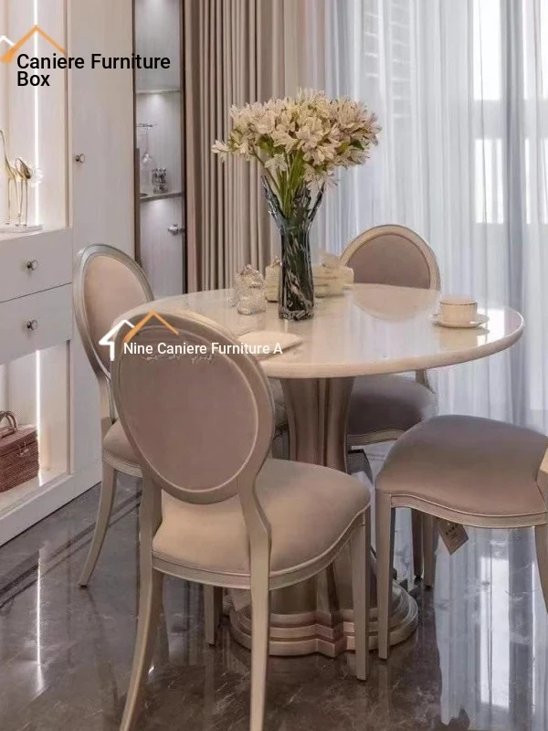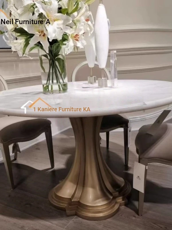 American-style Light Luxury Round Dining Table - Marble Top, Inspired by Meike's Design, Perfect for Elegant Dining Spaces - Modern Round Table for Your Home Dining Experience