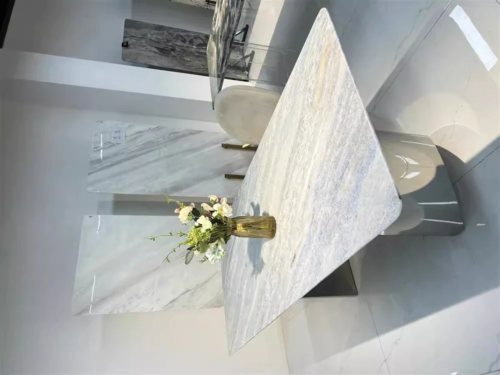 Brazilian Imported Blue Crystal Luxury Dining Table - Rectangular Natural Marble for Italian Light Luxury Villa Design, Perfect for Stylish Dining Experiences