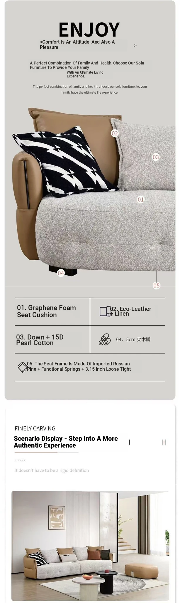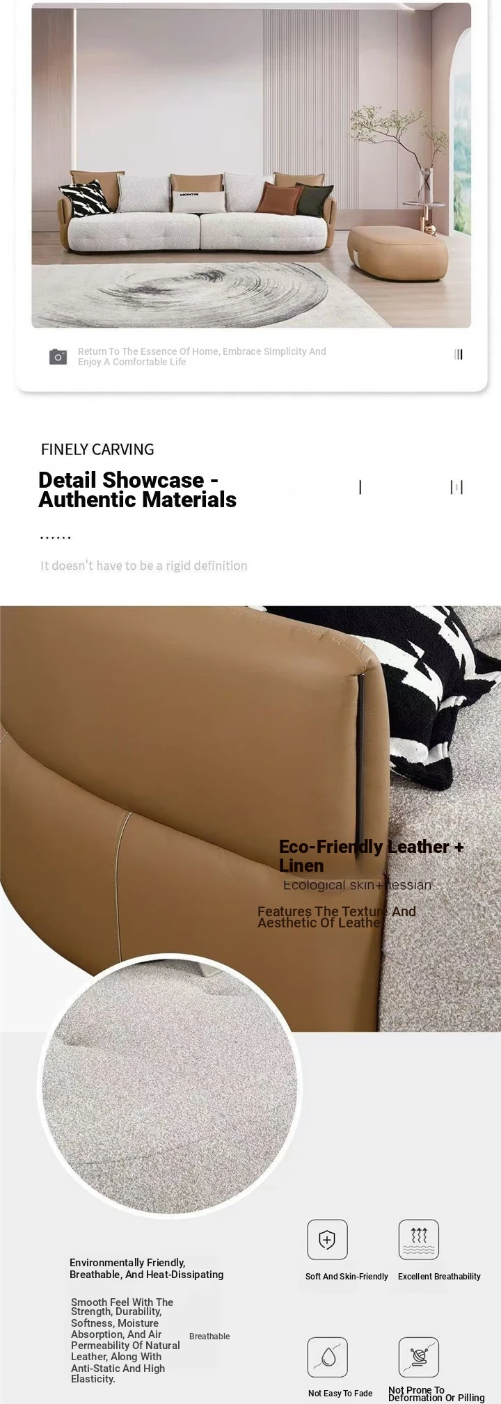 Chengdu Curved Sofa for Living Room - Premium Graphene Foam, Eco-Friendly Leather, Cotton Linen, with Solid Larch Wood Frame - Perfect for Stylish Gatherings and Comfort