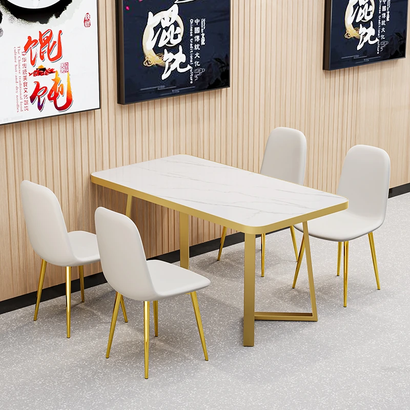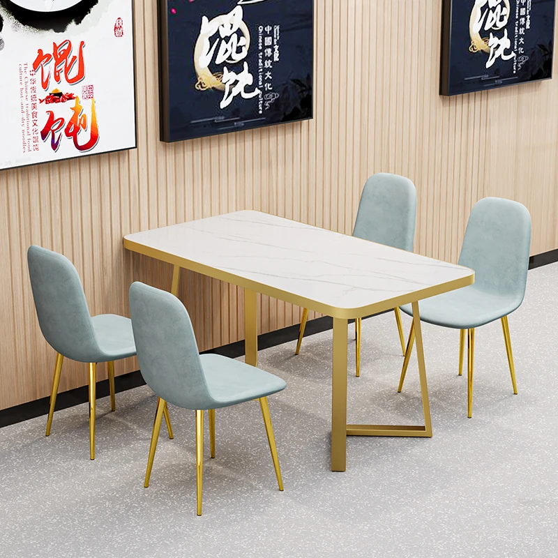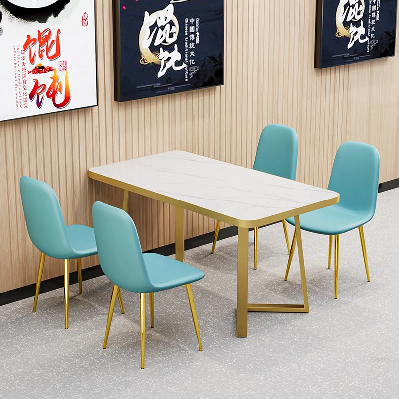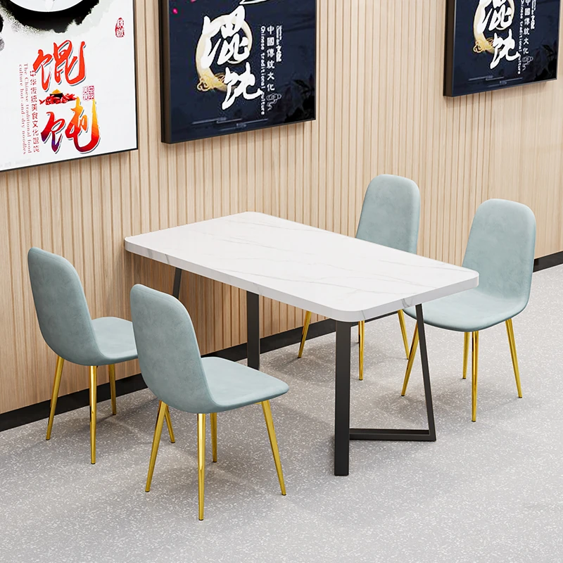 Commercial Dining Table and Chair Set for Fast Food, Dessert, and Milk Tea Shops - Rectangular Design Perfect for Snack Bars and Barbecue Restaurants