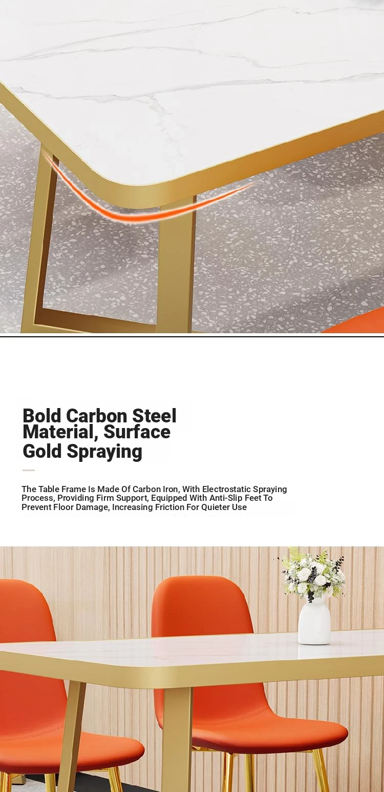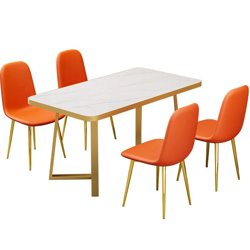 60*120 Table [gold] + orange leather chair * 4