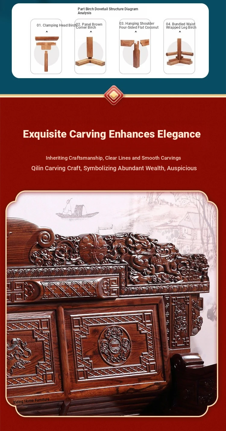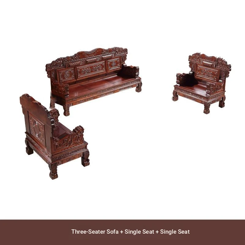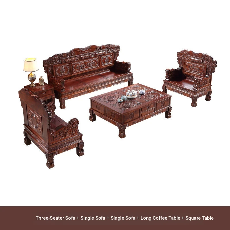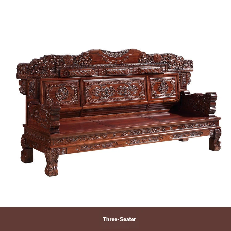 CWF Classic Chinese Carved Sofa Set - Solid Old Elm & Rosewood for Spacious Living Rooms - All-Real Wood Antique Style Furniture for Home
