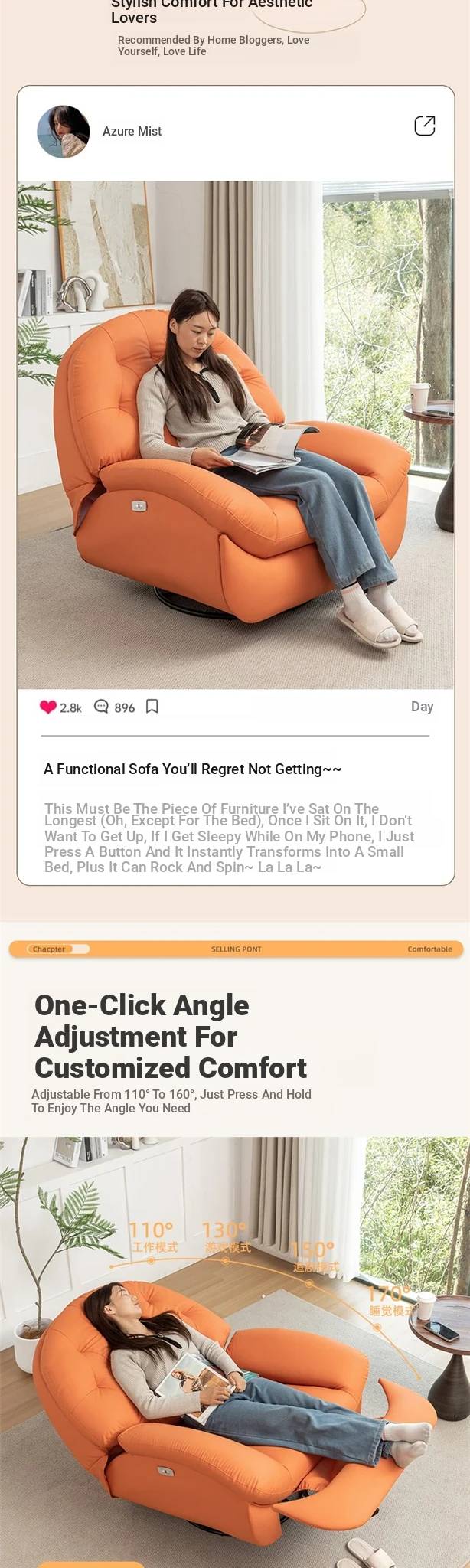 Electric Multi-Functional Recliner Chair - Comfortable Lounge Chair for Relaxation and Sleep, Perfect for Living Rooms and Home Use, Ideal for Solo Relaxation
