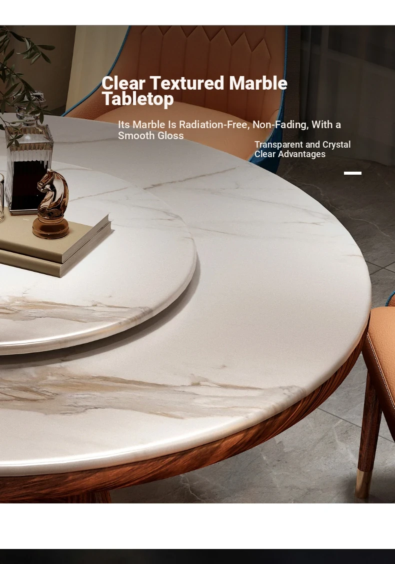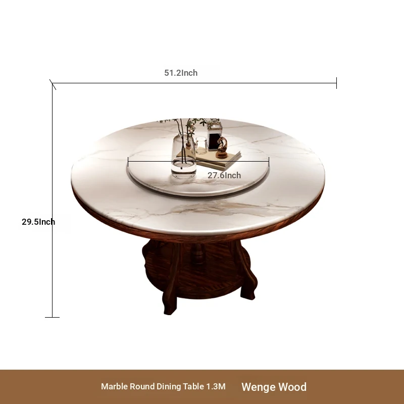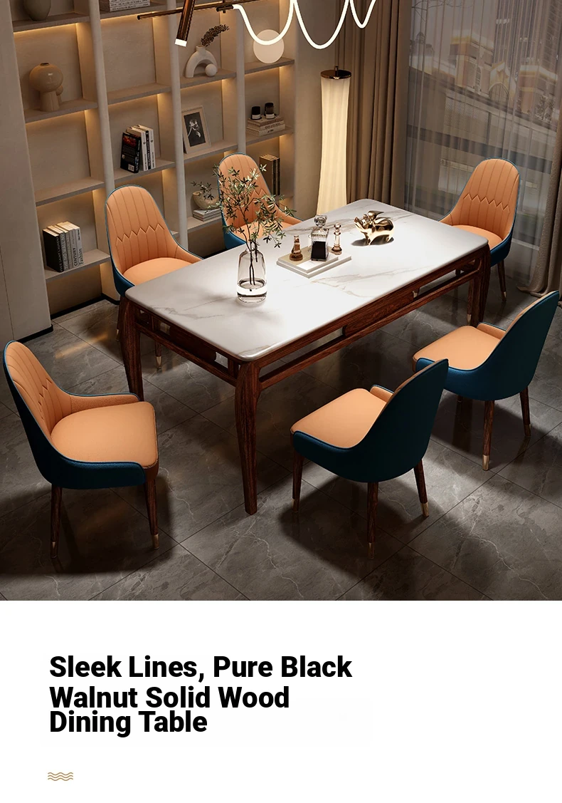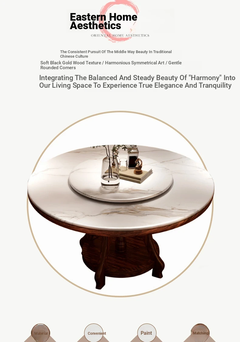 Elegant Black Golden Wood Marble Round Dining Table - Modern Minimalist New Chinese Style Solid Wood Set with Dining Chairs for Luxurious Dining Experience