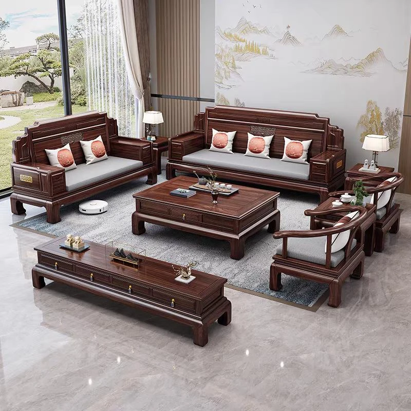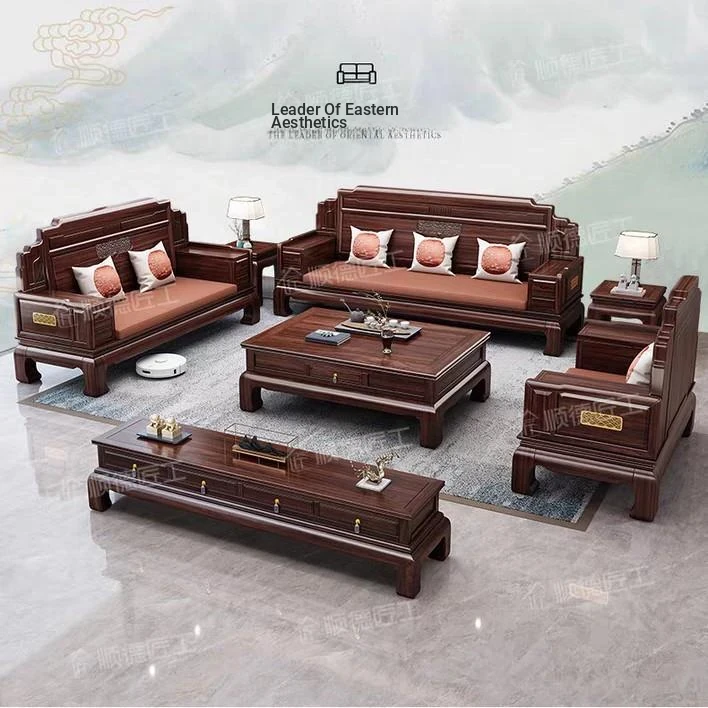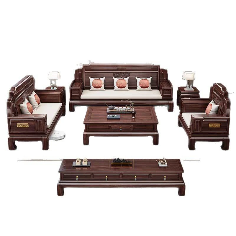 Elegant New Chinese Style Blackwood Solid Wood Sofa Set for Spacious Living Rooms - Luxury Storage Solution for High-End Villas with Chic Chinese Aesthetic