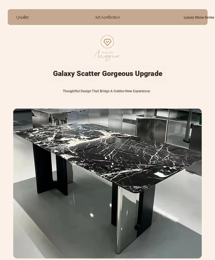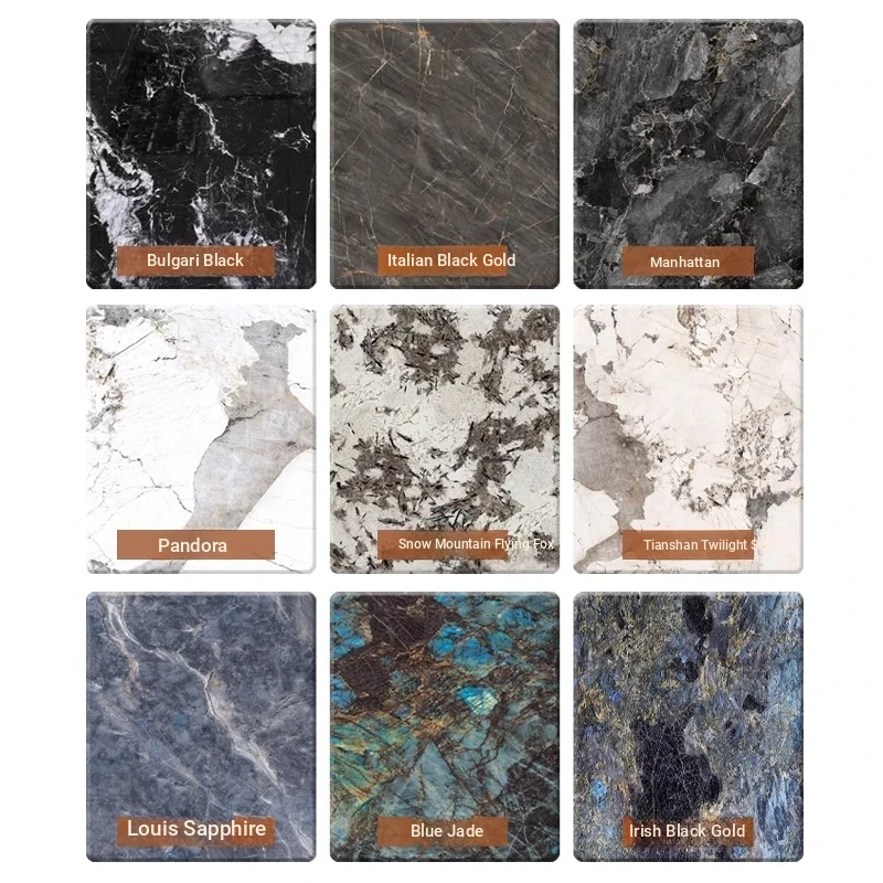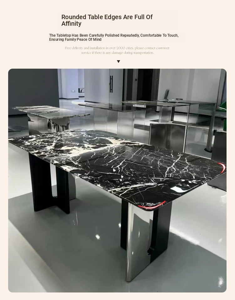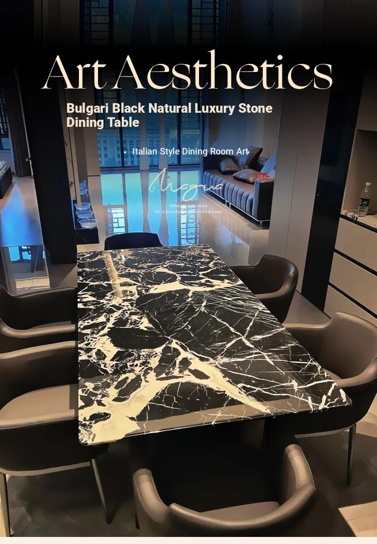 Bulgari black Super crystal stone dining table "natural marble + 3d printing grain 」