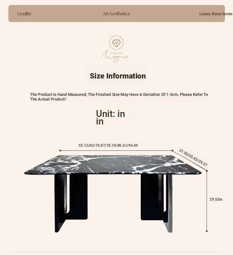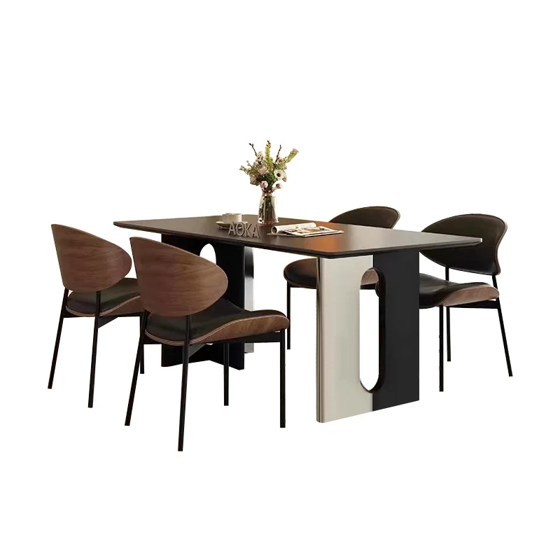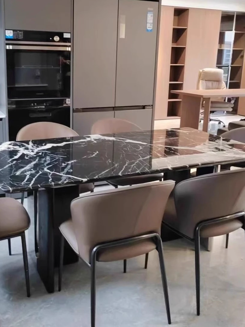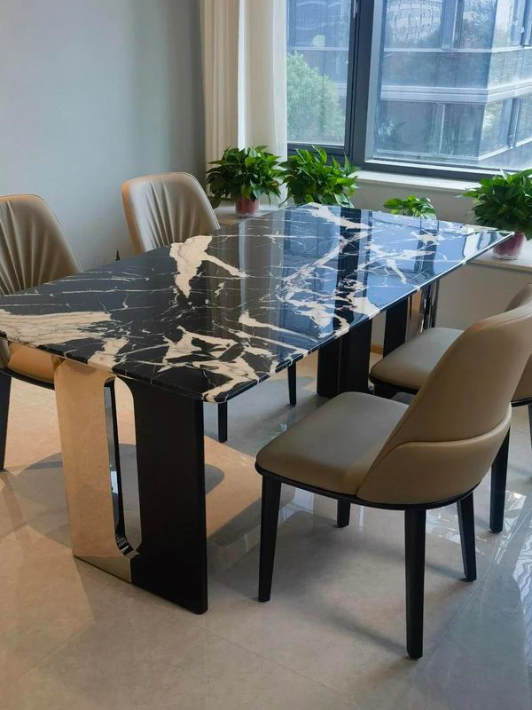 Elegant Rectangular Black Marble Dining Table Set - Premium Bulgari Style, Perfect for Small Spaces, 2025 New Arrival