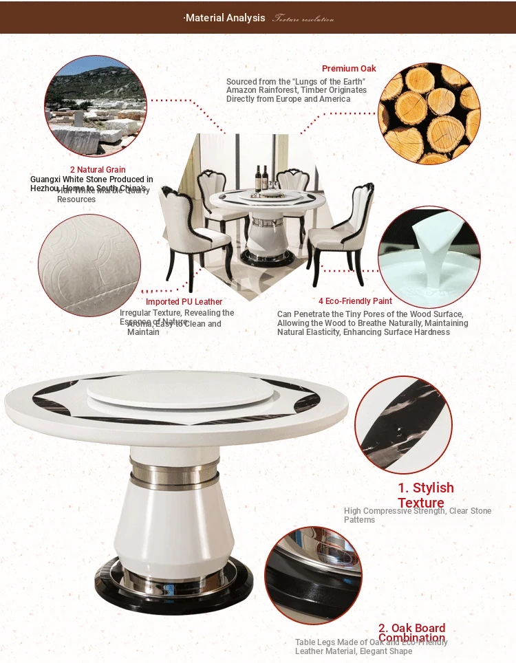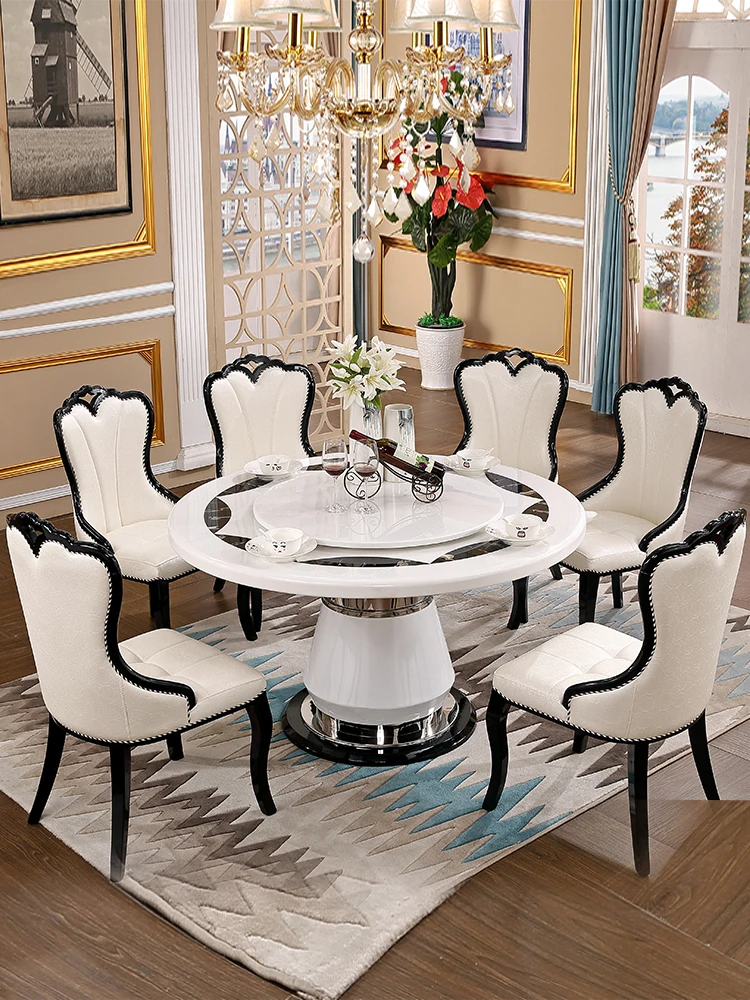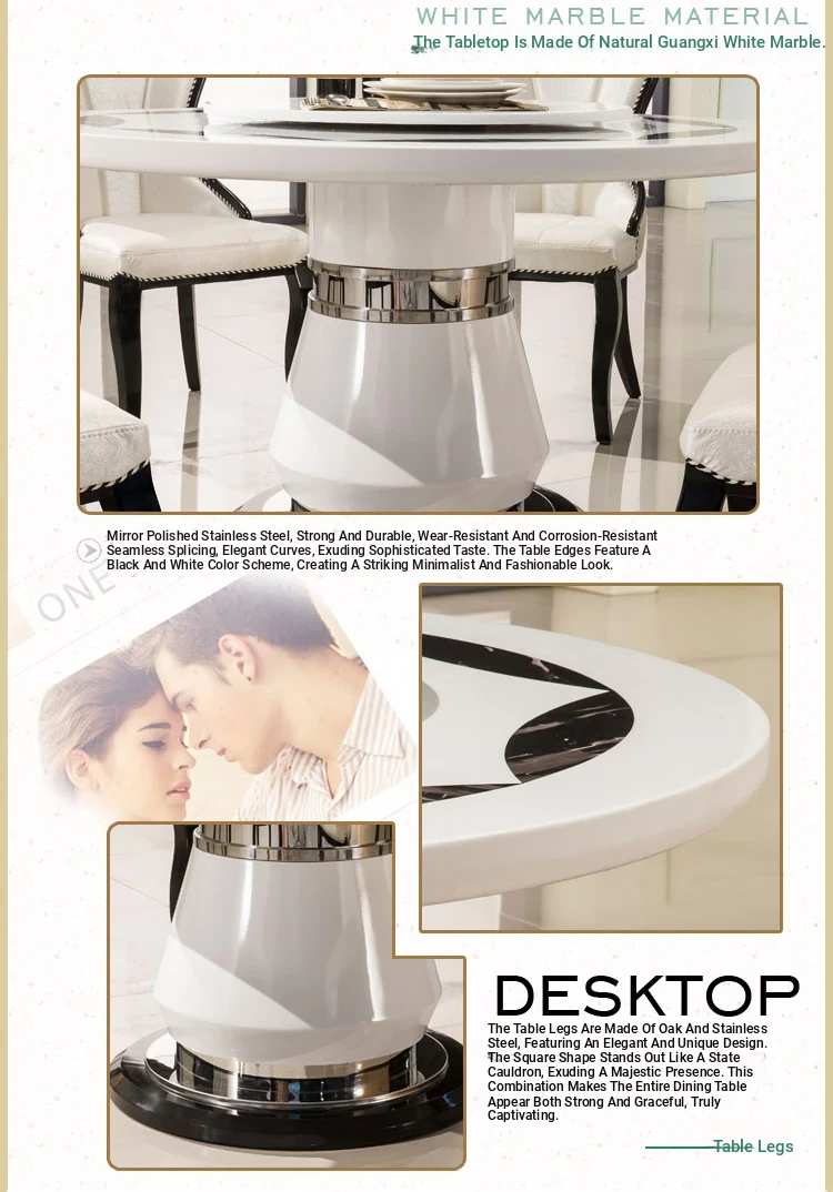 59.06in dining table +(90 turntables) +10 PU leather chairs