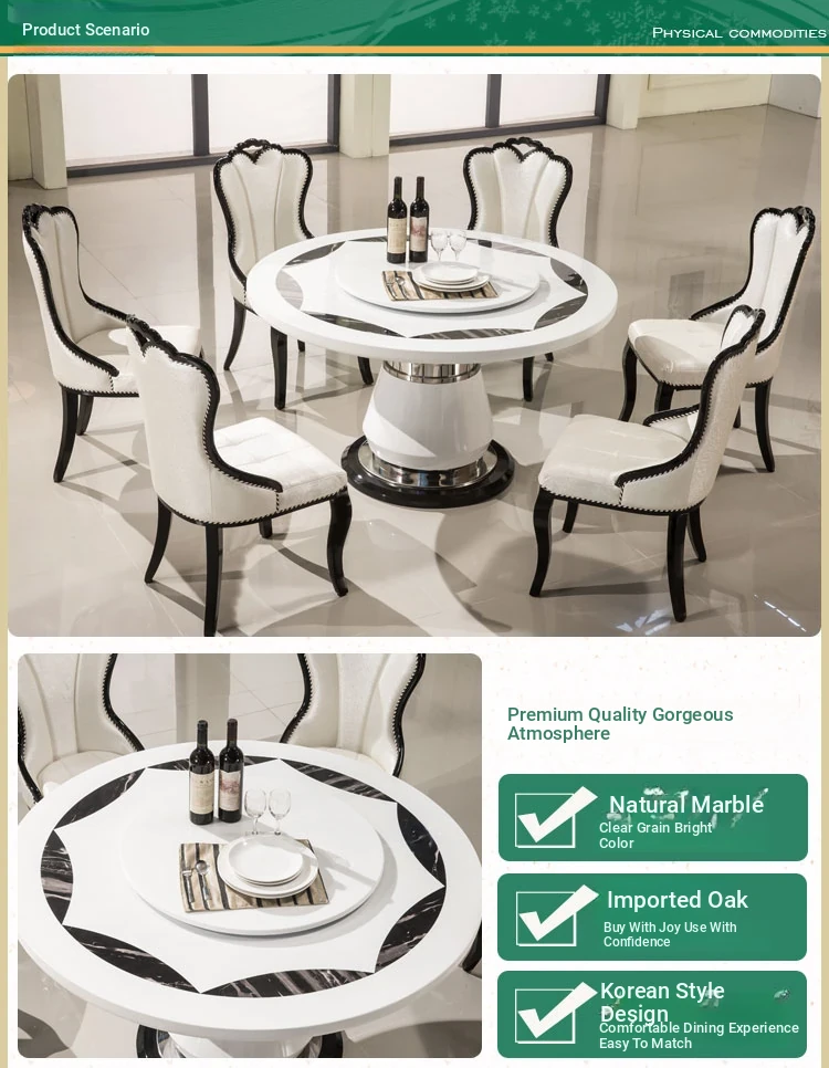 53.15in dining table +(80 turntables) +6 PU leather chairs