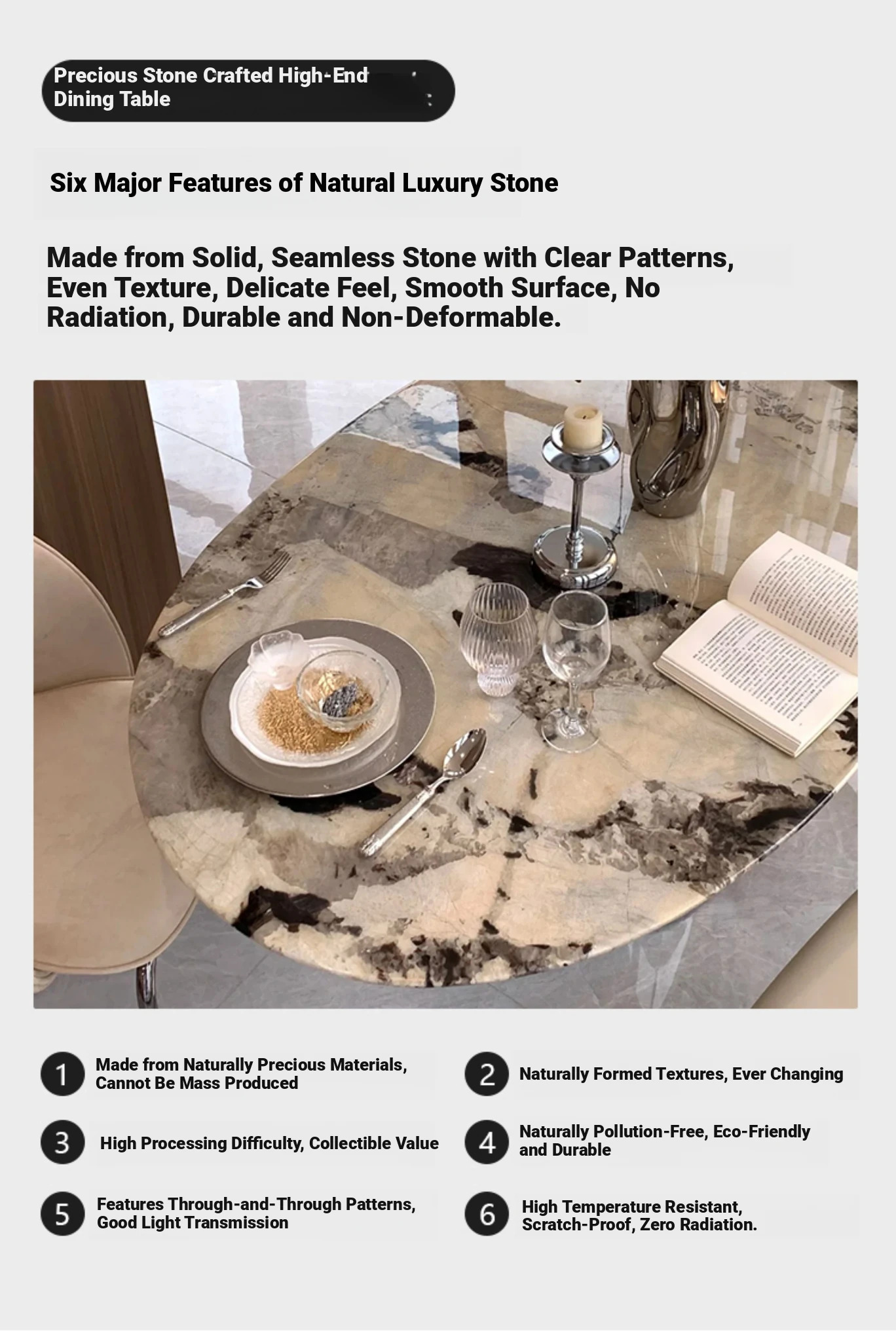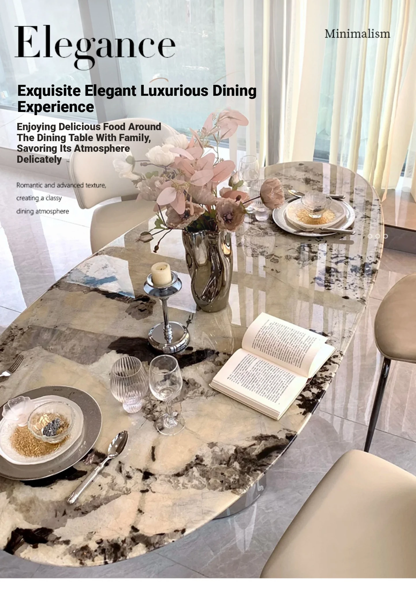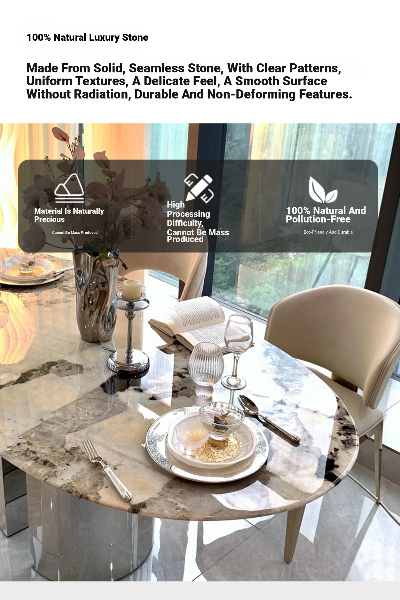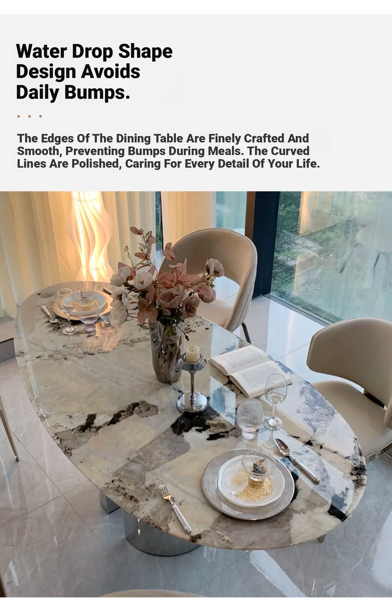Elegant Water Drop Shaped Marble Dining Table - Pandora Natural Luxury Stone Table for Italian Style Casual Dining in Small Spaces