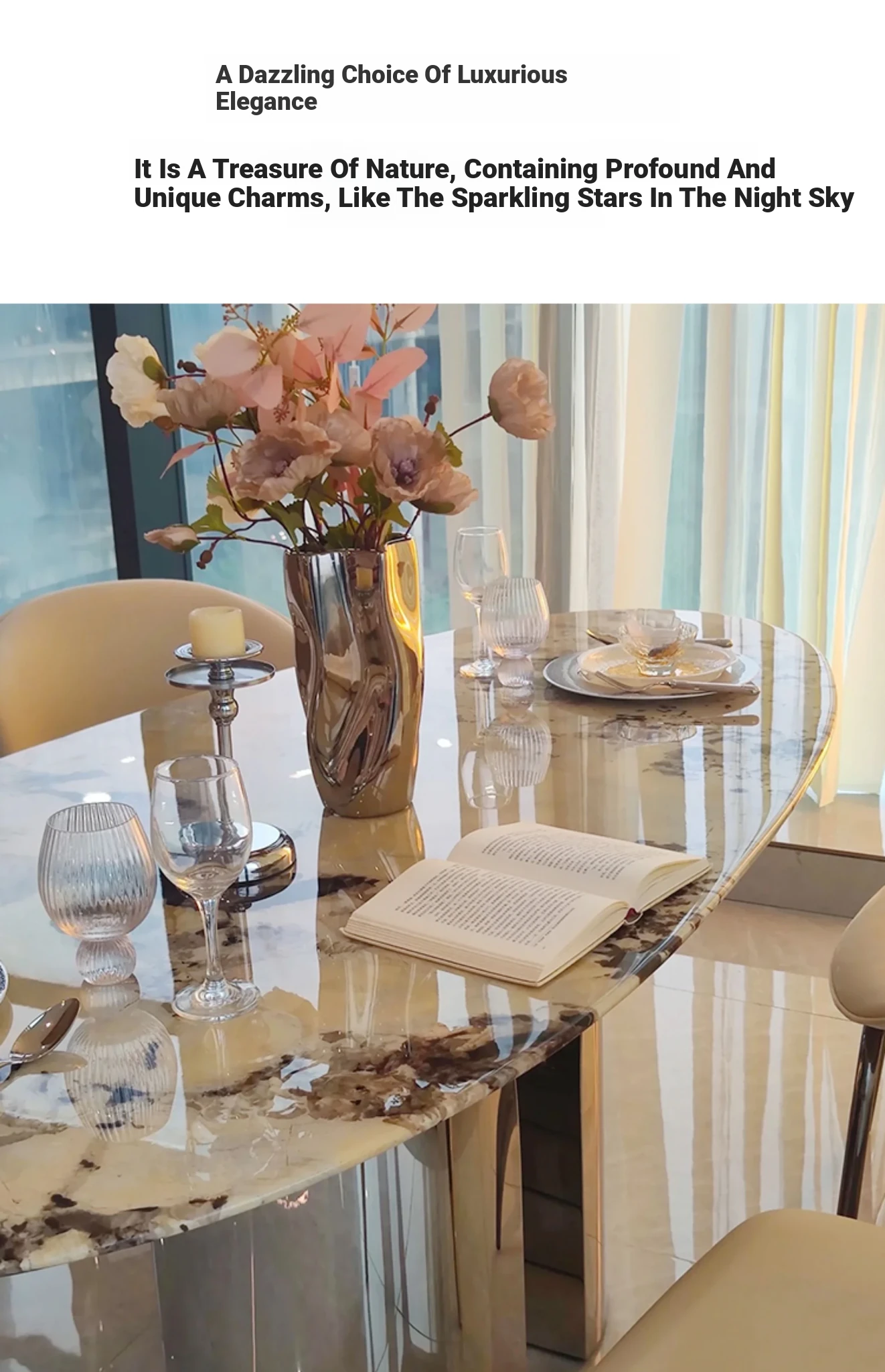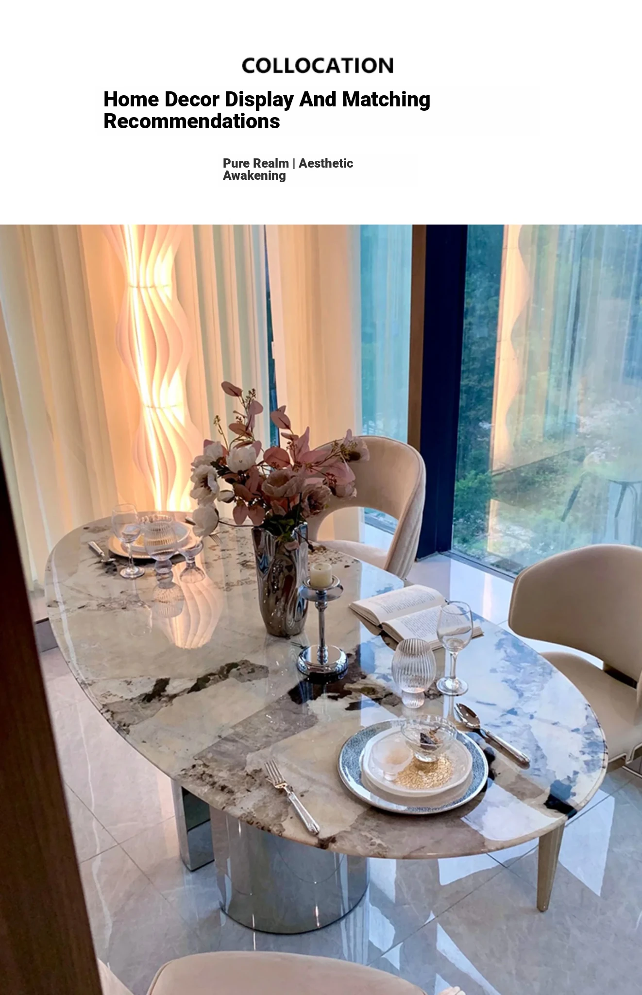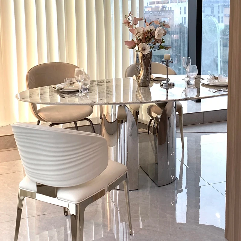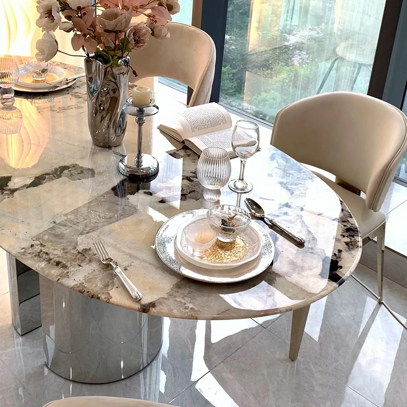 Elegant Water Drop Shaped Marble Dining Table - Pandora Natural Luxury Stone Table for Italian Style Casual Dining in Small Spaces