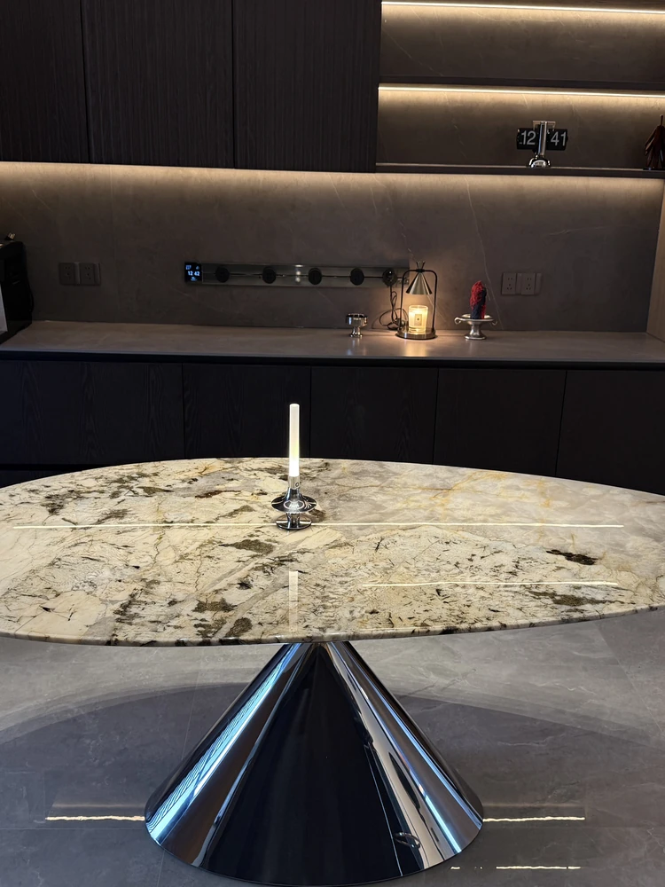 Elegant Waterdrop-Shaped Marble Dining Table - Pandora Natural Luxury Stone UFO Design for Italian Style Small Spaces