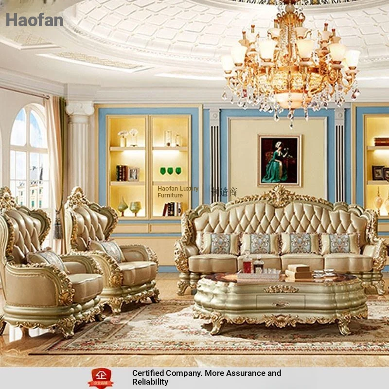 European Luxury Villa Sofa Set - Elegant and High-End Living Room Furniture for Spacious Homes, Featuring Premium American and European Style Design.
