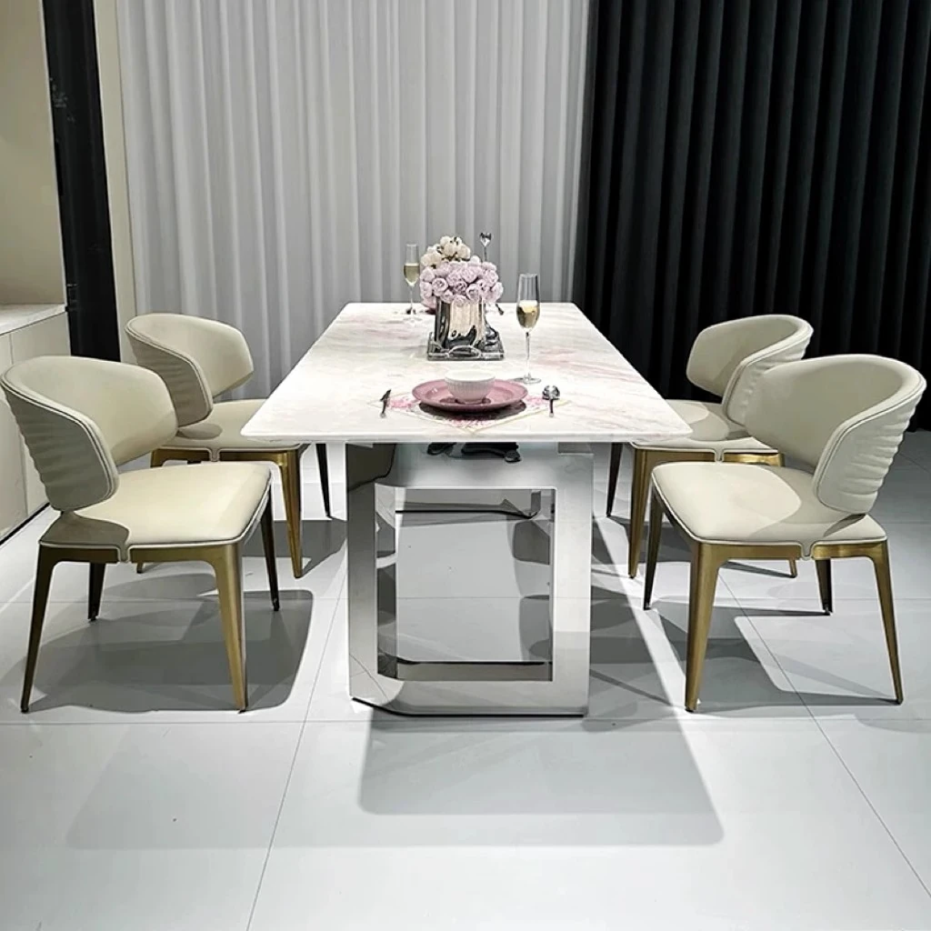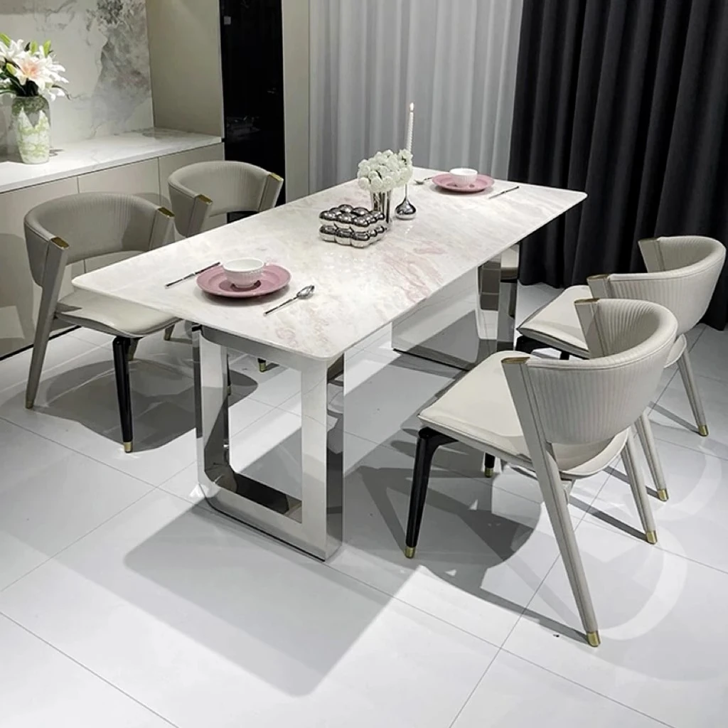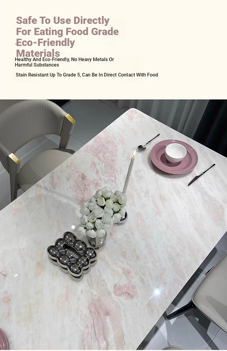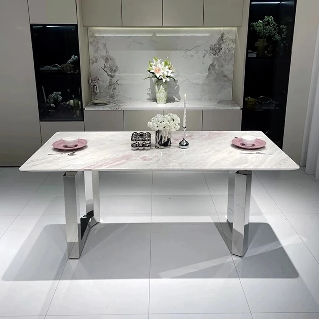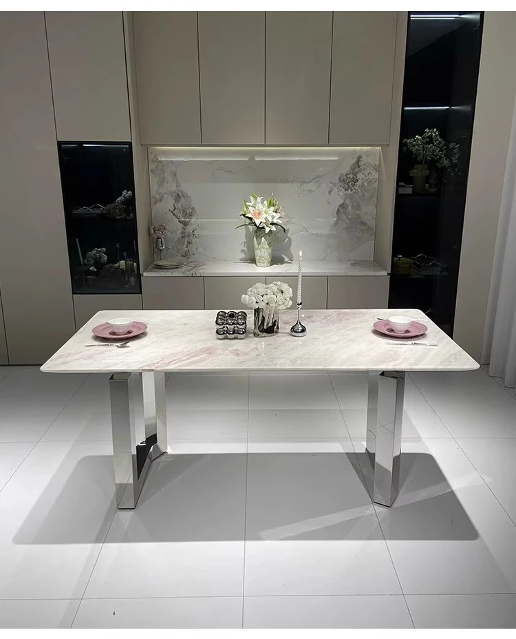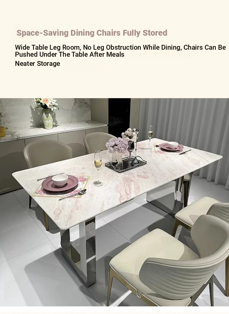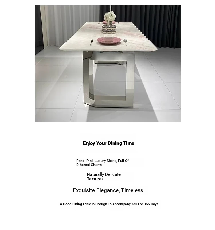 Fendi Pink Luxury Marble Dining Table - Natural Stone, Elegant and Transparent, Modern Minimalist Rectangular Design for Home Dining with Chairs