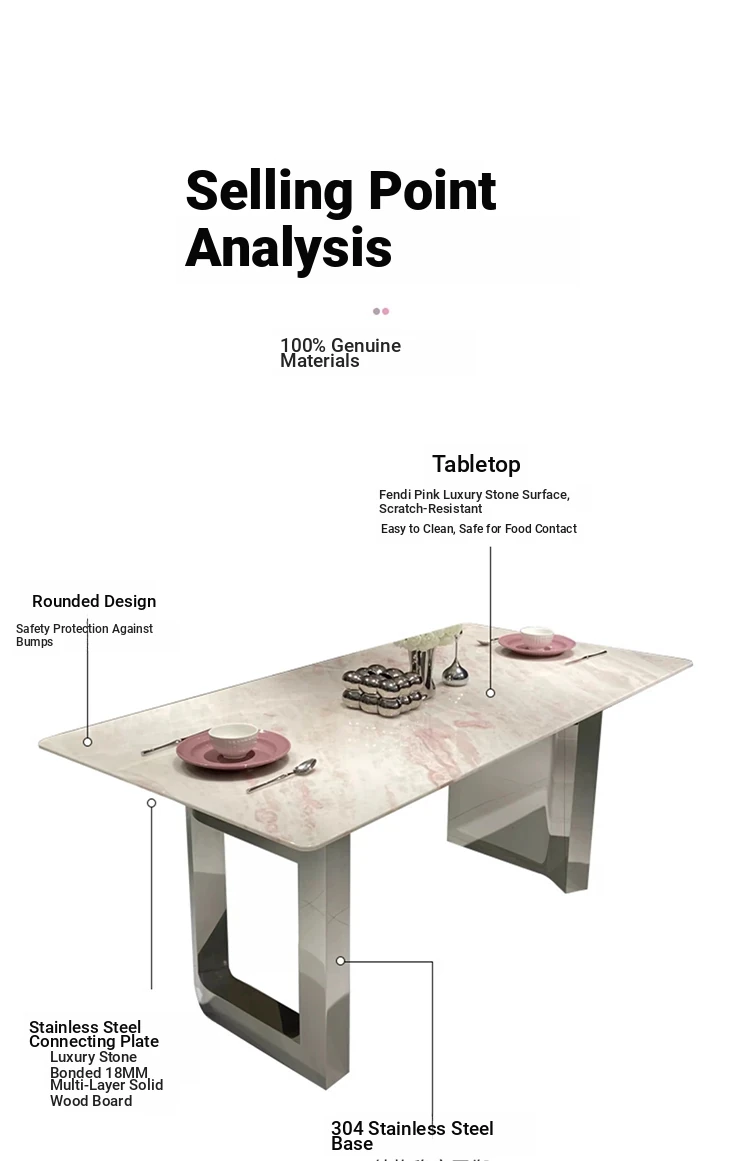 180*90 Long Table [Fendi Powder Natural Luxury Stone]]