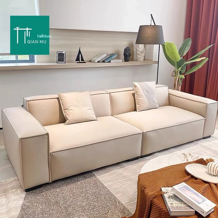 Free Shipping to Hong Kong: Modern Minimalist Leather Sofa Set - Compact Three-Seater Couch for Small Living Rooms, Stylish and Comfortable Design