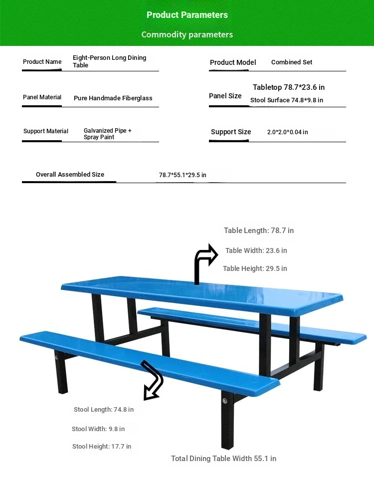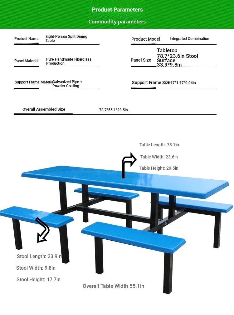 Guangdong Manufacturer's 6/8-Person Cafeteria Dining Table and Chairs – Perfect for Employee Canteens with Integrated Seating for Up to Eight! Ideal for Comfortable and Efficient Dining in Your Workplace.