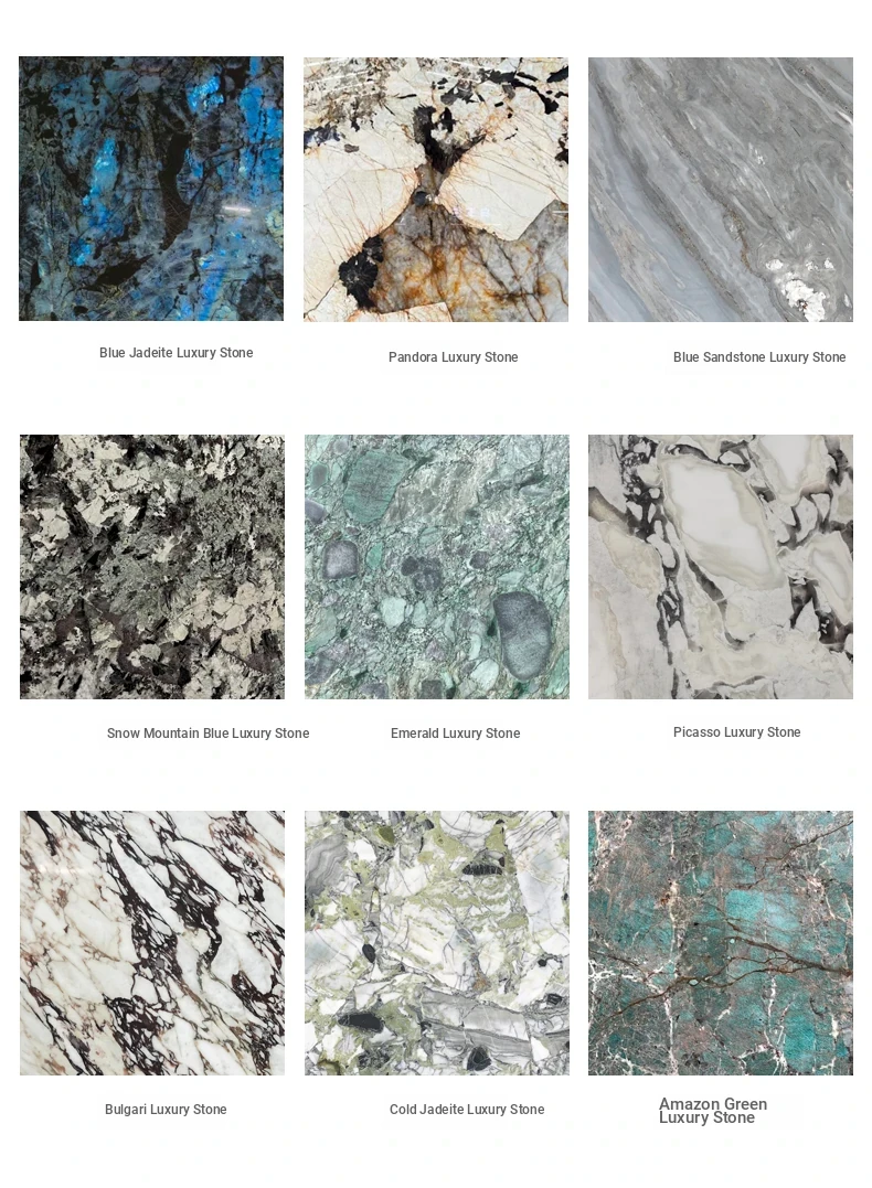 Imported Blue Jade Luxury Stone Dining Table - Rectangular High-End Villa Natural Marble Pandora Light Luxury Dining Table