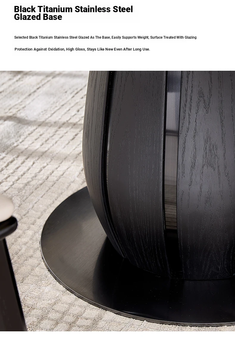 51.18 in + 29.53 in turntable + dining chair *4 (natural ice marble + white wax wood frame + black titanium base)
