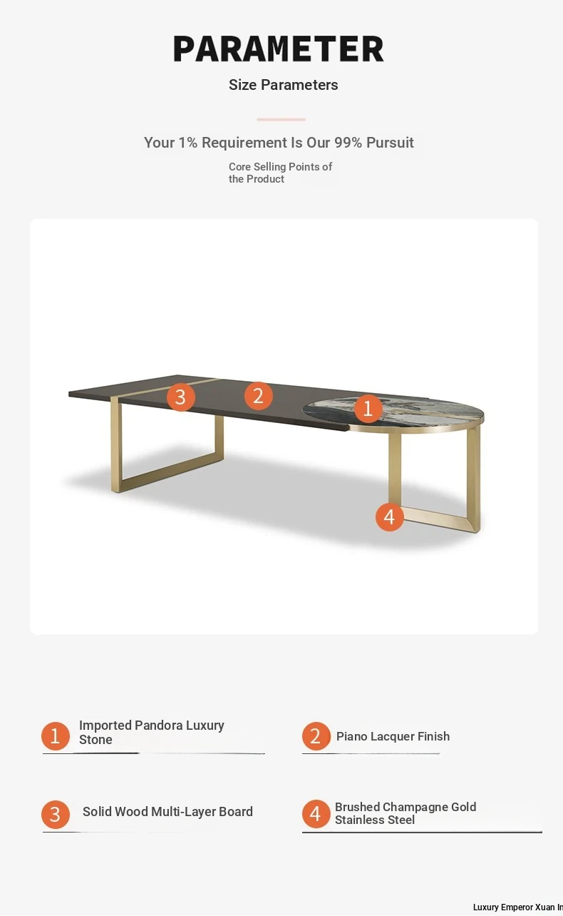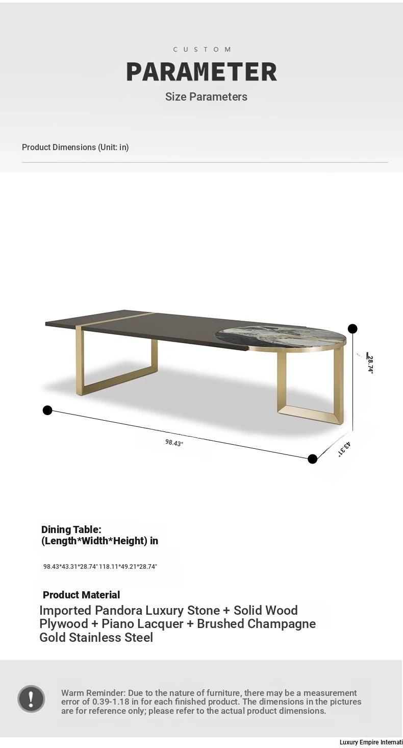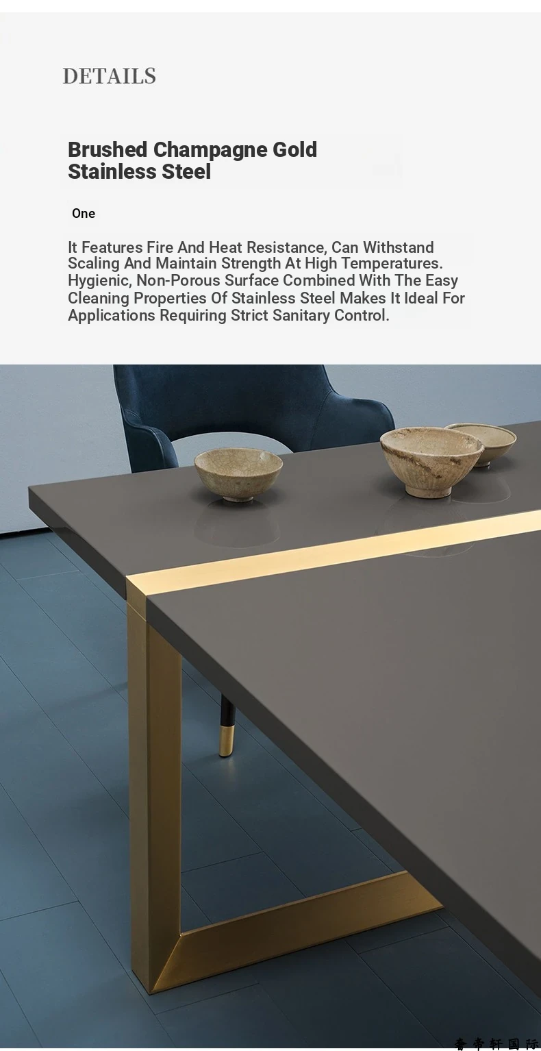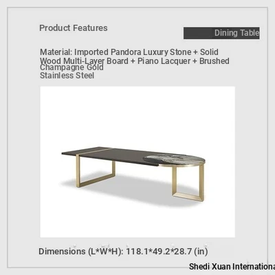 Italian Light Luxury Marble Dining Table - Designer Villa Furniture, Stainless Steel Modern Minimalist Rectangular Dining Table for Home Use