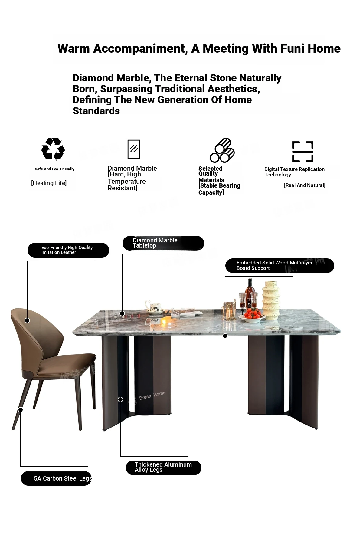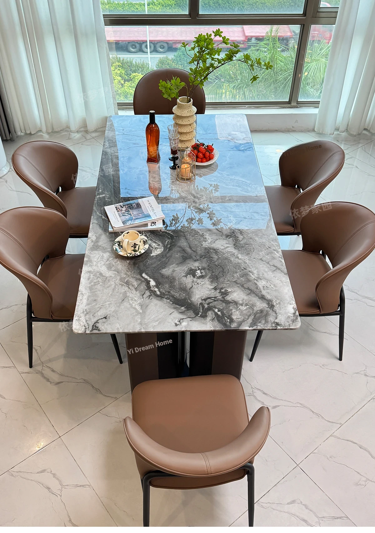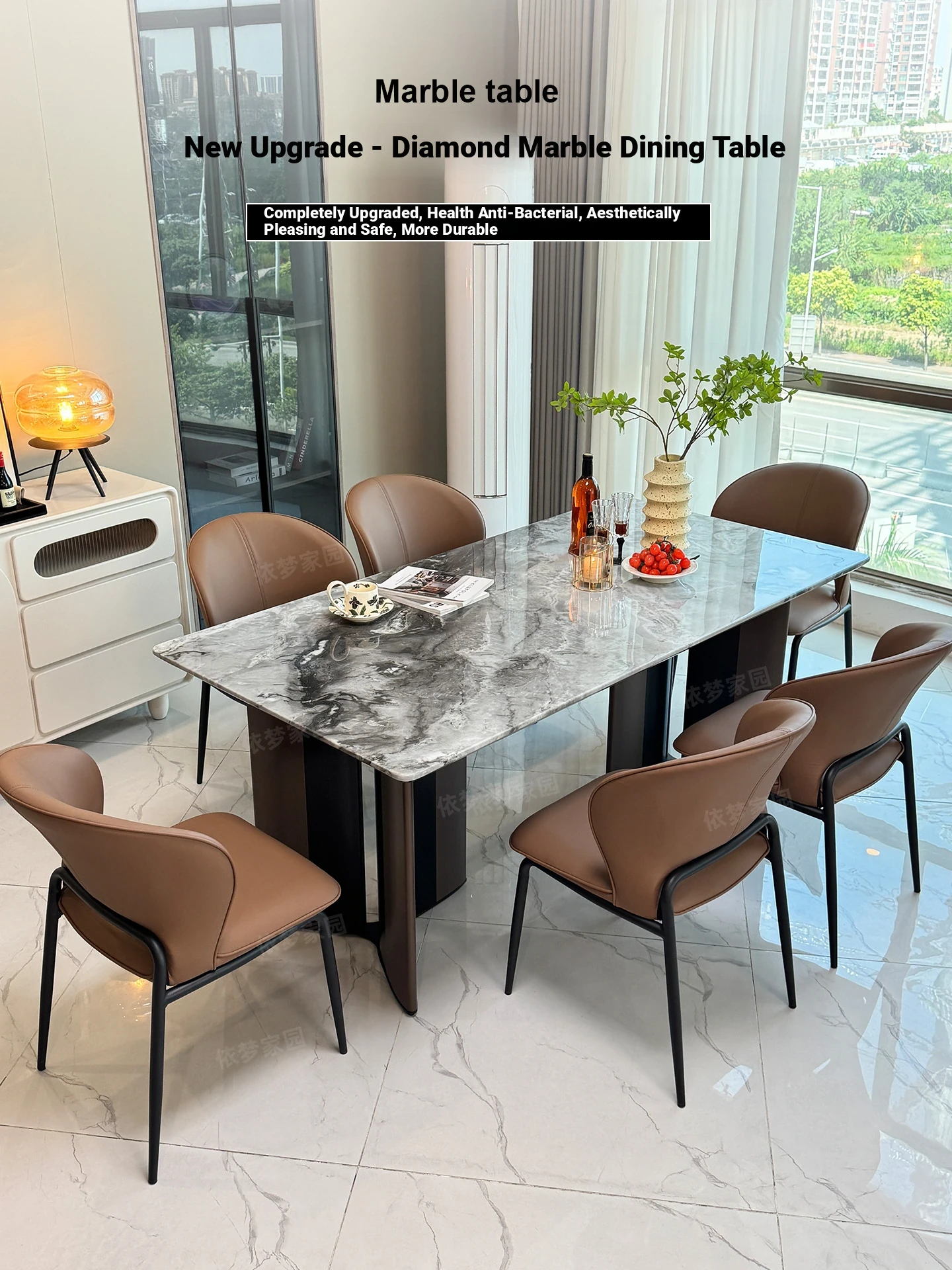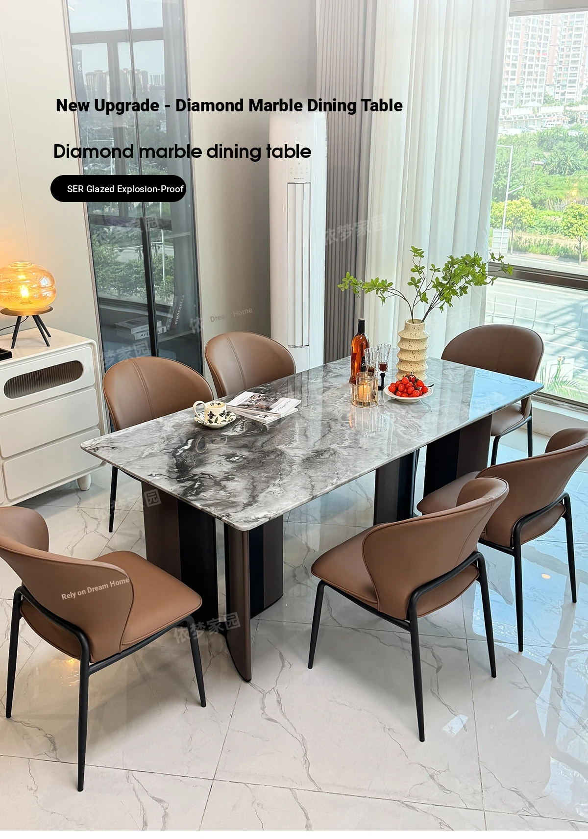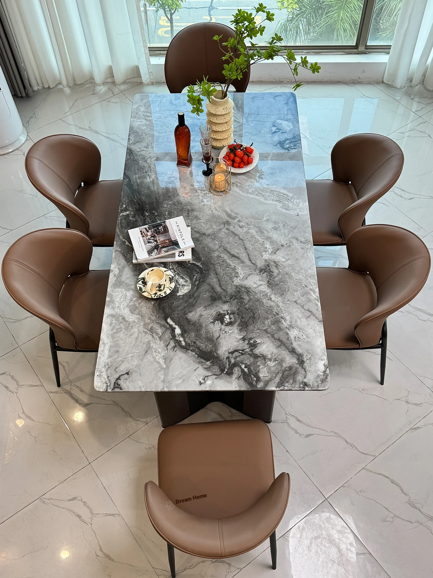 94.49 in marble dining table +6 chairs