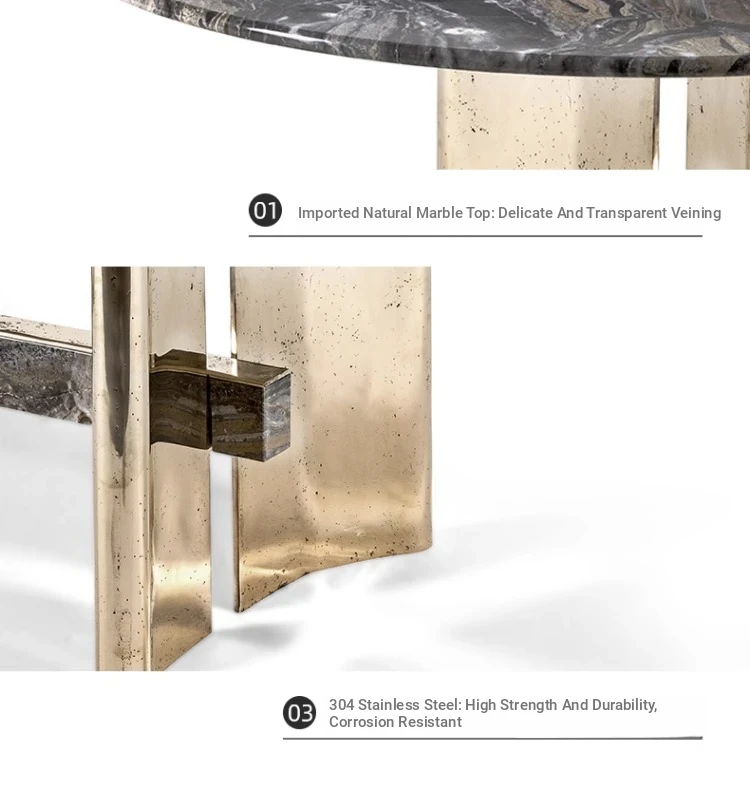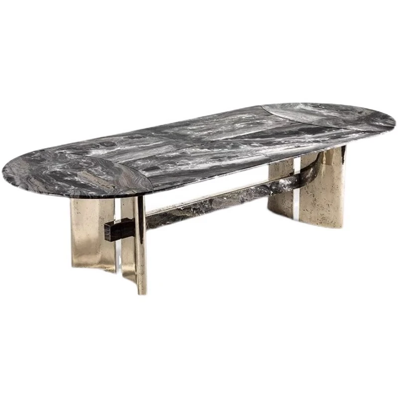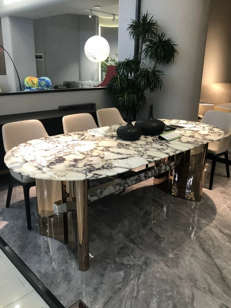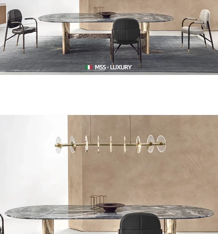 Italian Luxury Natural Marble Dining Table - High-End Designer Oval and Rectangular Options for Villas and Spacious Living Areas