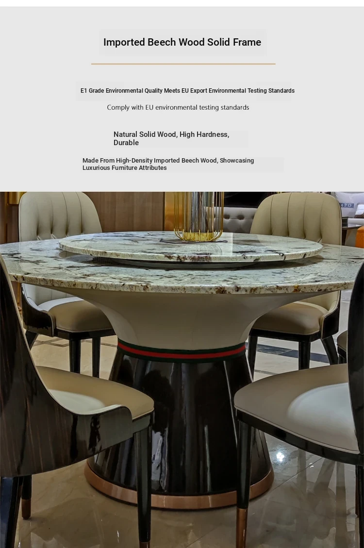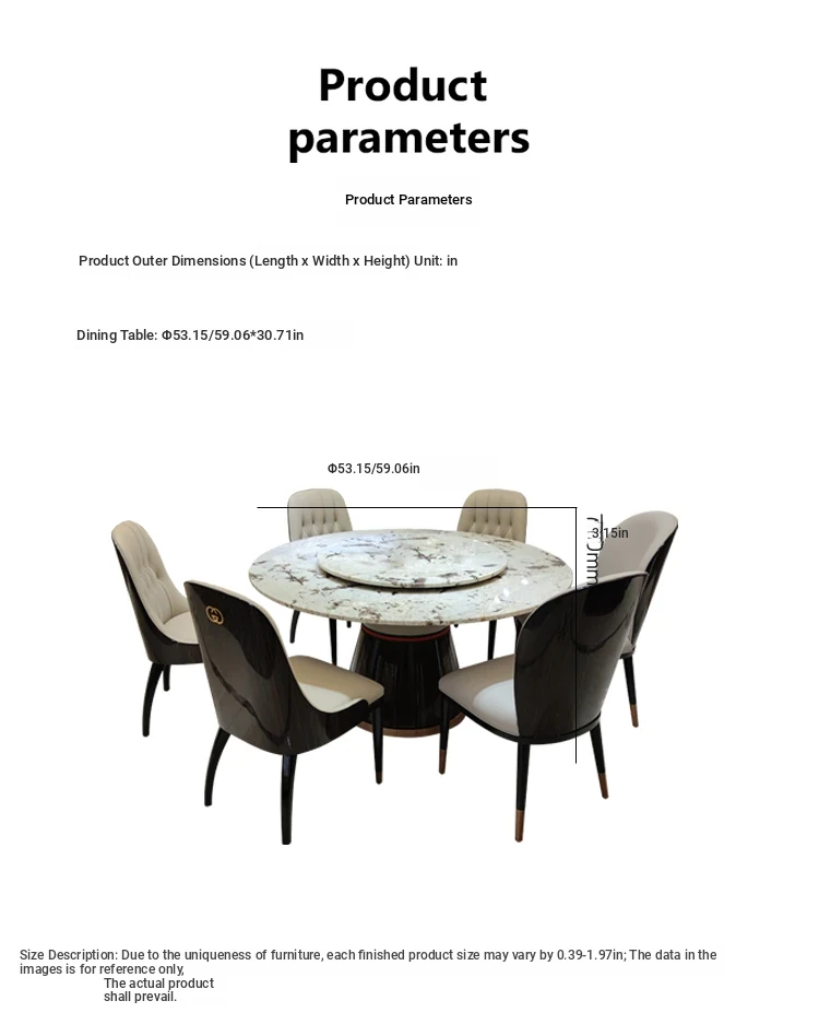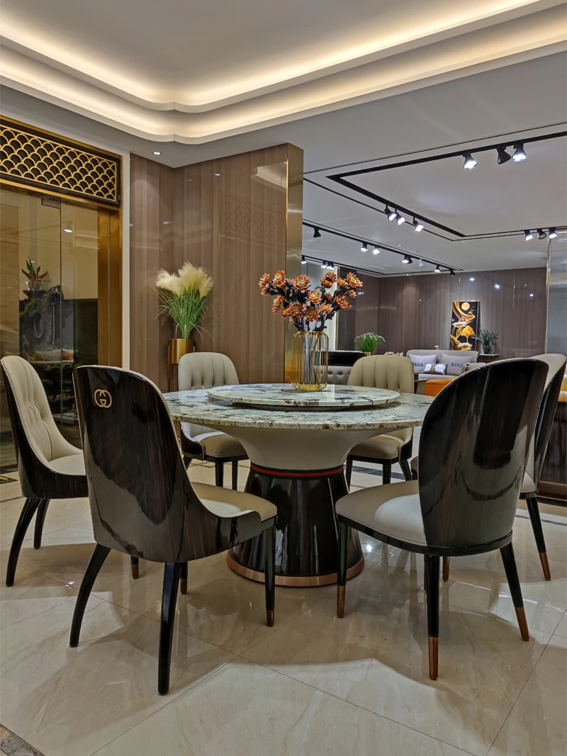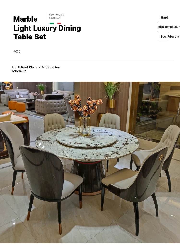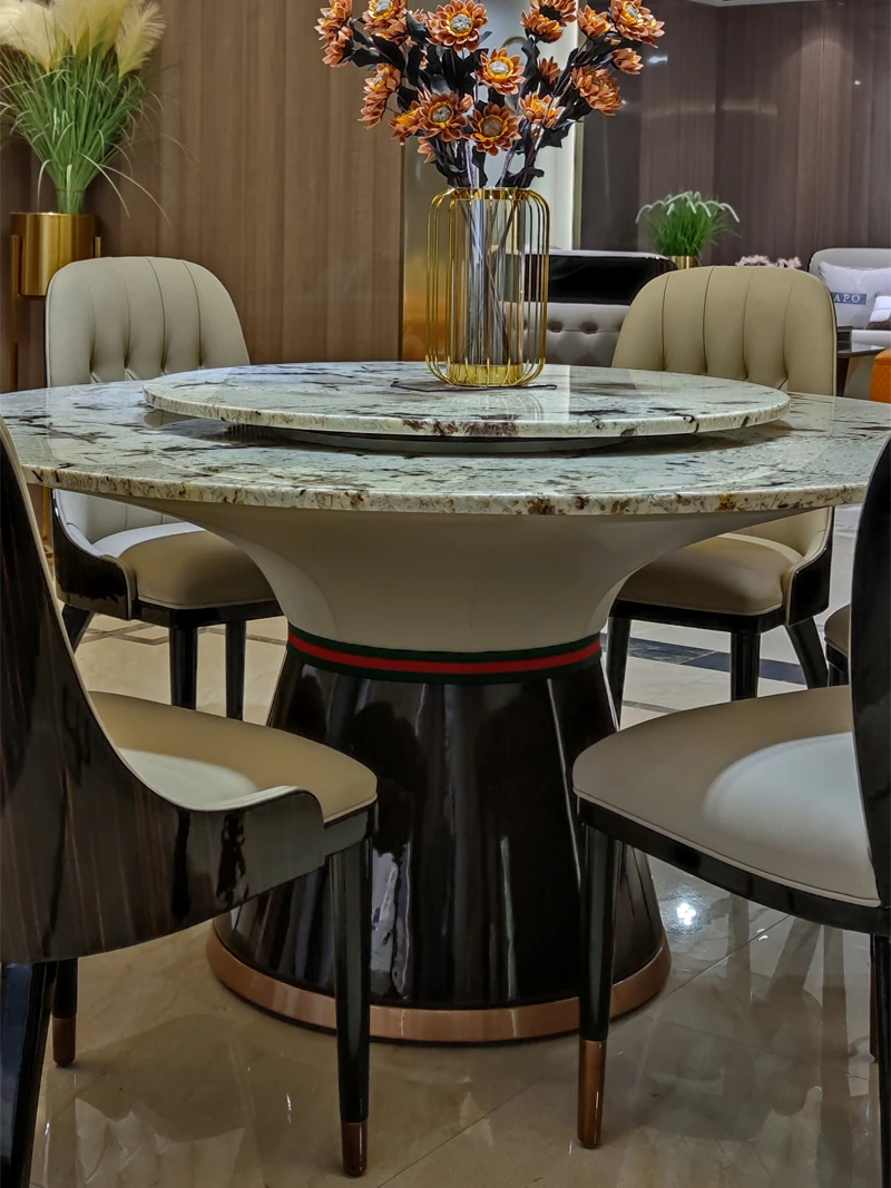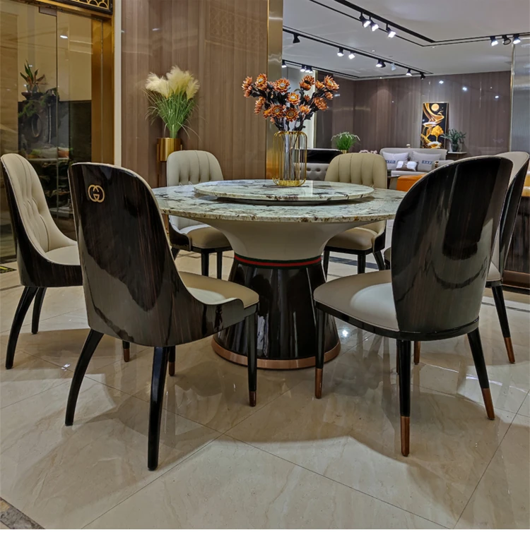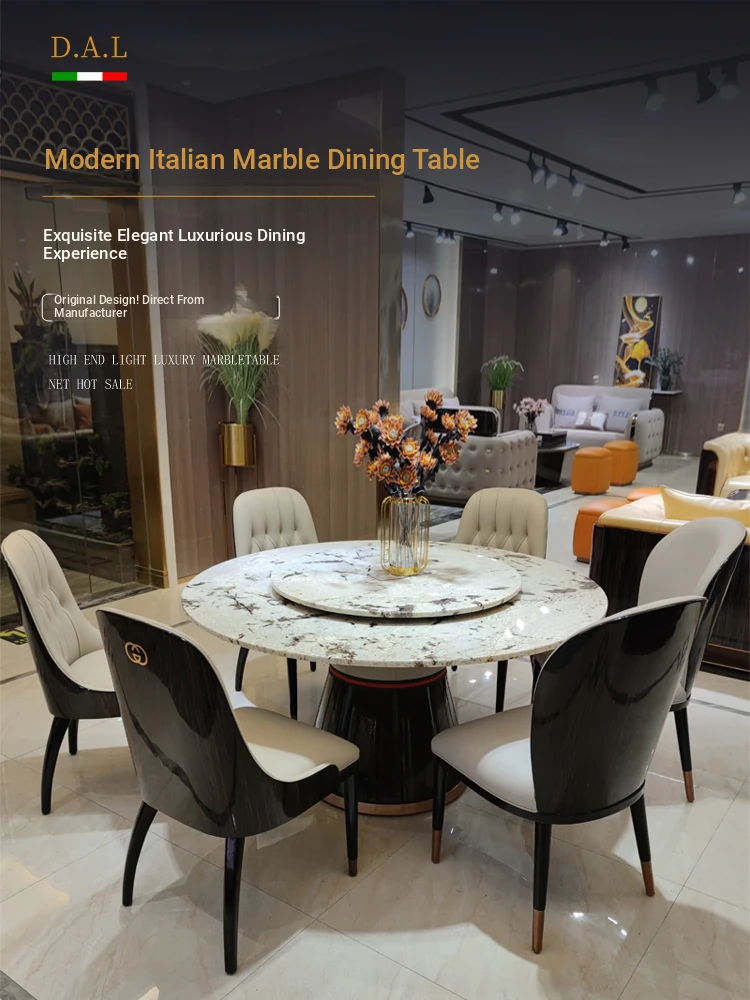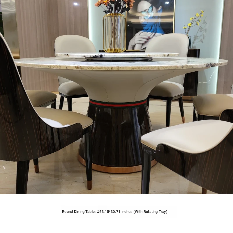 Italian Marble Round Dining Table Set - Luxurious and Elegant Design with 1 Table and 6 Chairs, Perfect for Modern Minimalist Homes