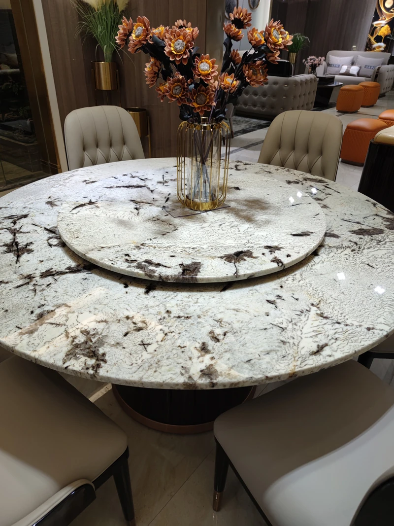 Round dining table φ:53.15 in with turntable({Plain marble})
