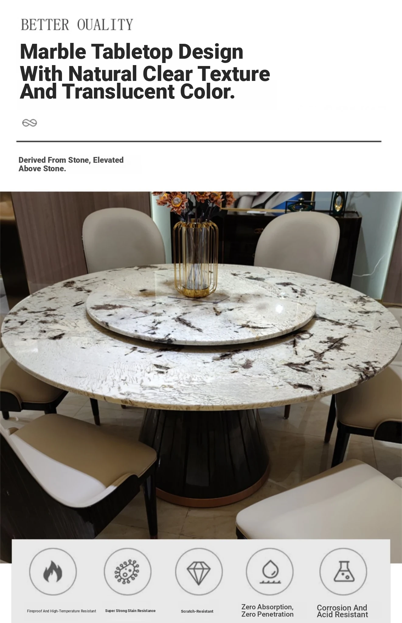 Round dining table φ:59.06 in with turntable({Plain marble})